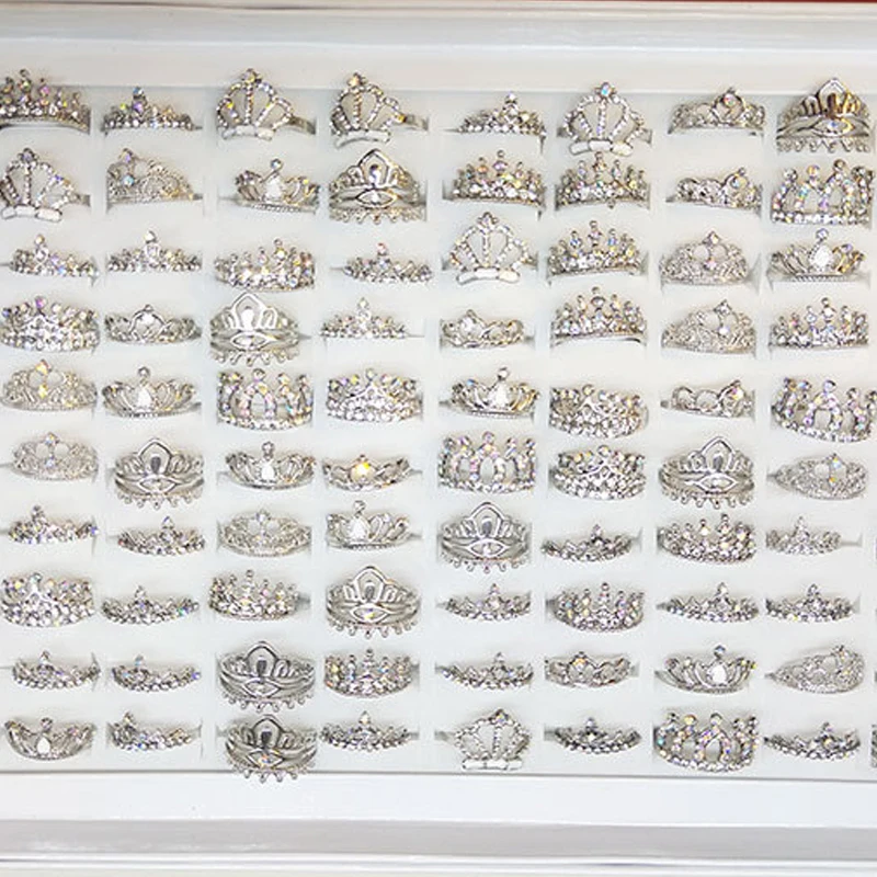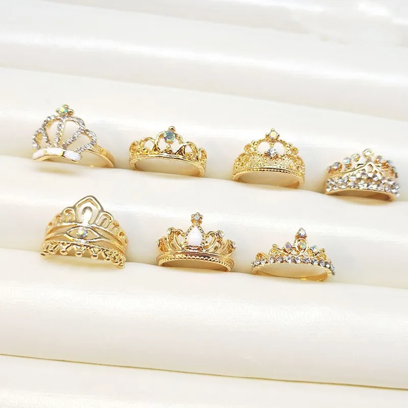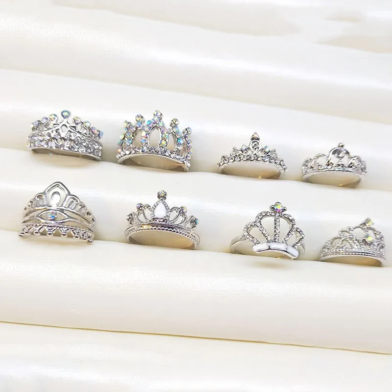 Кольца в форме короны, золотистыесеребристые металлические ювелирные изделия, 2 шт.