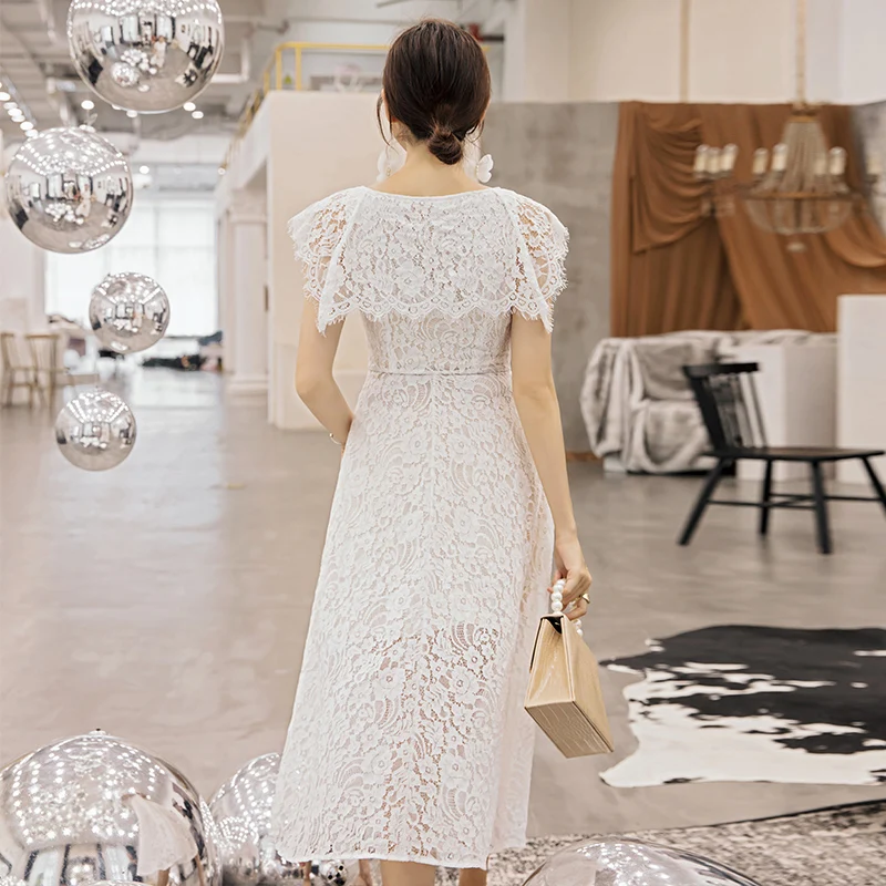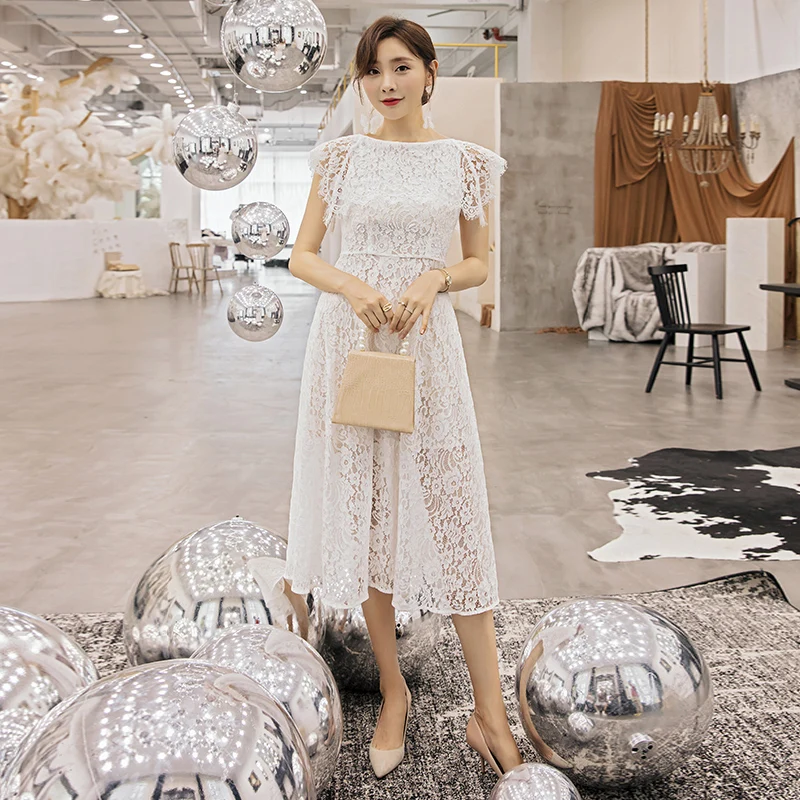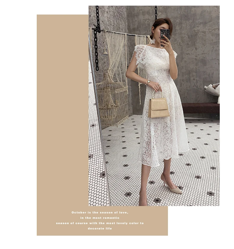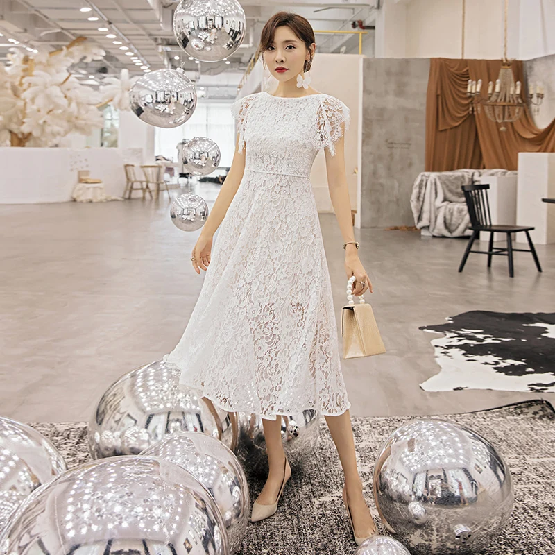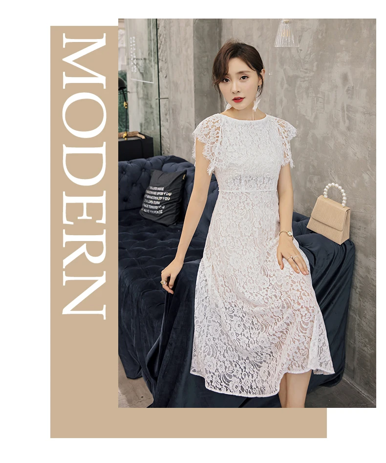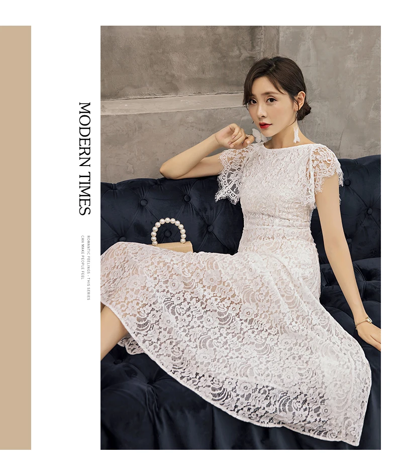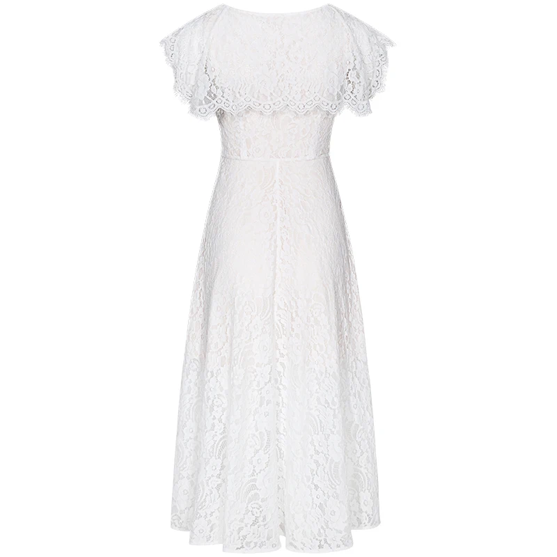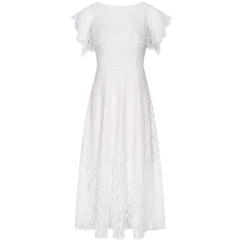 Платье YIGELILA длинное до середины икры, элегантное белое свободное платье-трапеция с круглым вырезом и короткими рукавами, с кружевом, лето 65064