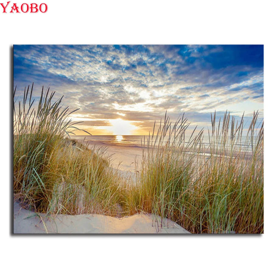 5D DIY Алмазная картина пляжная Вышивка крестом полностью квадратная круглая Алмазная вышивка побережье декорация мозаика украшение для гостиной