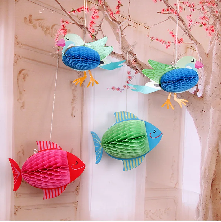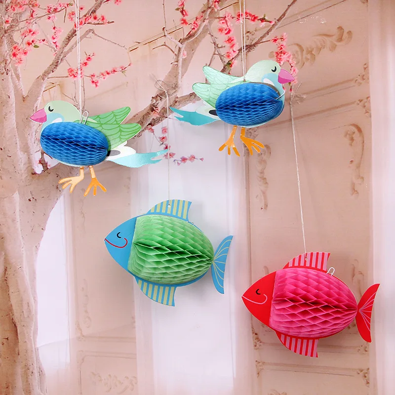 3D шар в виде сот рыбы, бумажный цветок, фонарь, шар, помпон для птиц на день рождения, детский душ, праздничные украшения, товары для вечеринки