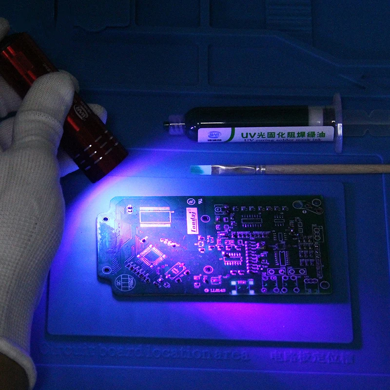 Применение: -Применить фон для фотосъемки на ваш выбор печатной. -- Расправьте его на печатной плате с покрытием прозрачная маска-пленка. -Избегайте воздействия под UV светильник или солнцезащитная) в течение нескольких минут. -- Смыть с дополнительной краски на бензине или на масляной основе растворителя. -- Это краска используется для того, чтобы защитить PCB следы от коррозии, влаги. -- Это также используется для ремонта печатных плат после пайки паяльная.