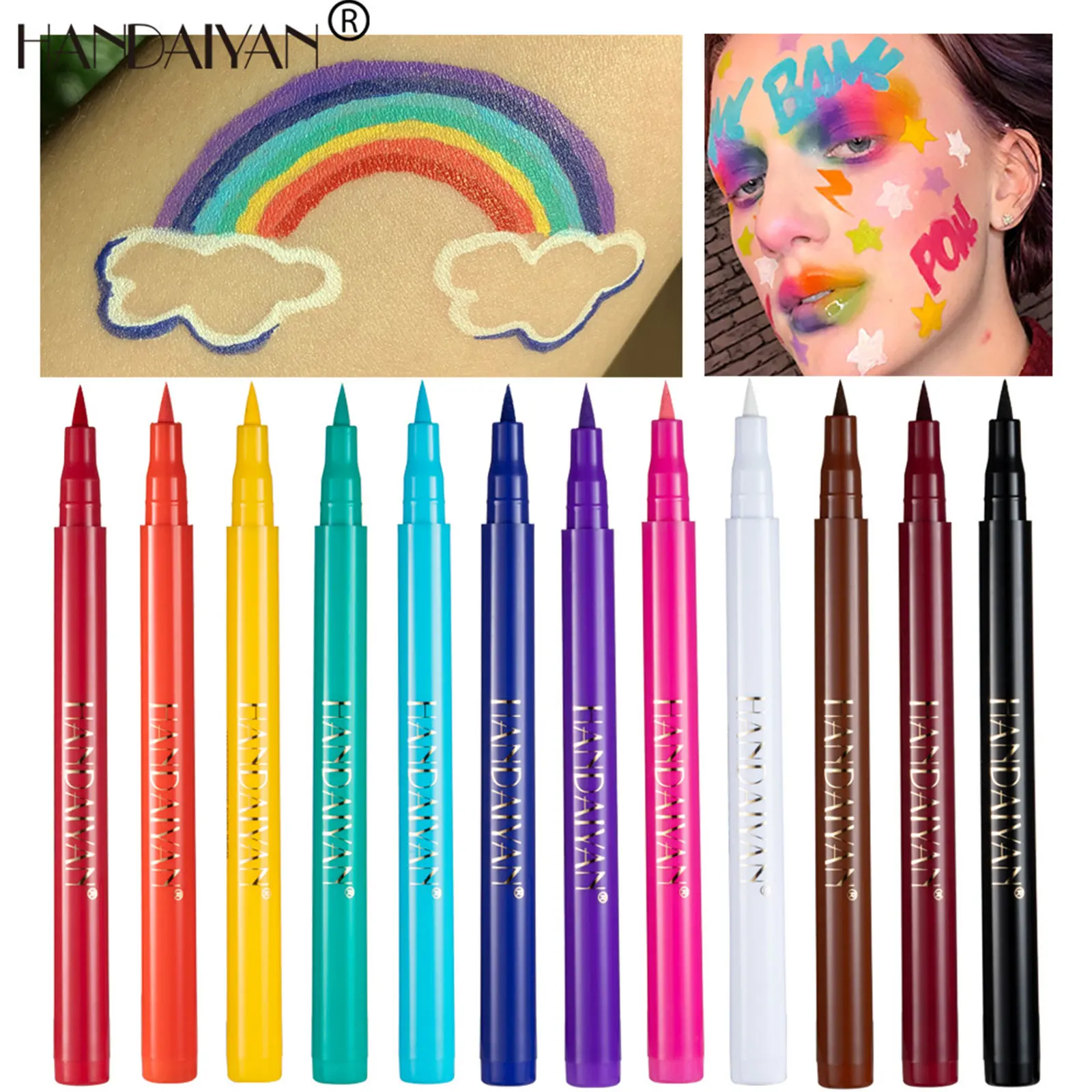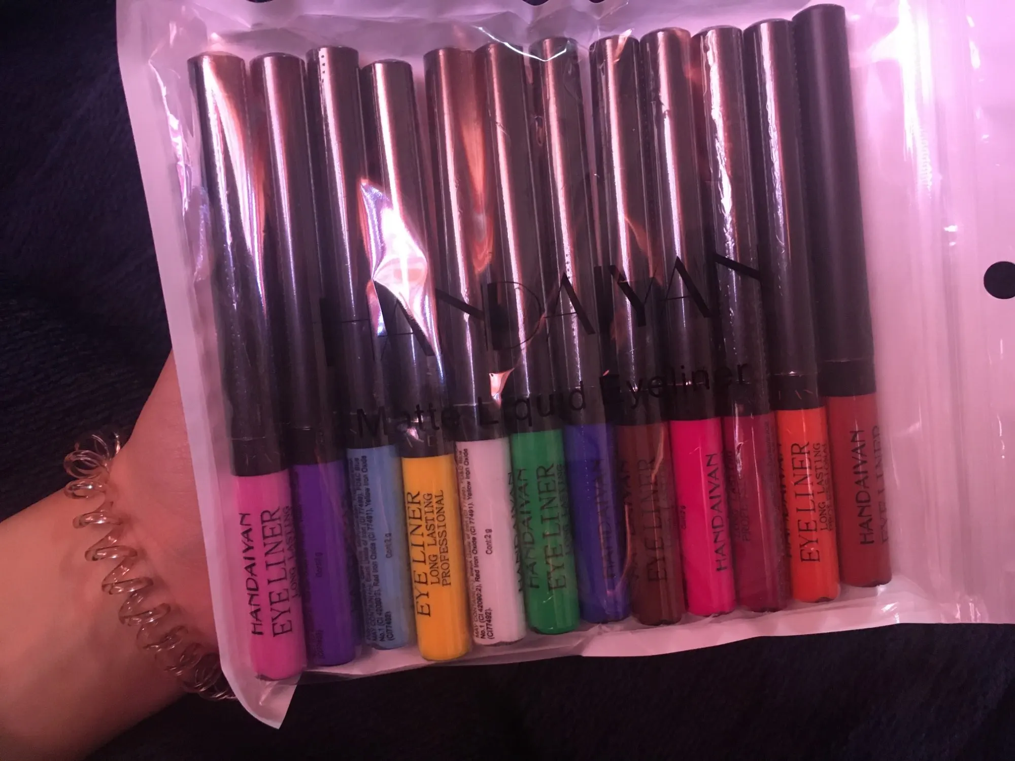 брала жидкую в баночках) приехали быстро, но забирала их неделю) приехали в коробке, в зип-пакете, каждая в индивидуальной упаковке. пока тестировала рисуя радугу-дугу подметила несколько минусов. Желтая подводка прозрачная якая-то наносить стоит как минимум в два слоя, но мы русские и не через такое проходили это мелочи. с начала немного сковывает кожу под подводкой потом как-то проходит, сама не поняла как это работает. все цвета пигментированы наносится легко кисточка мягкая, правда голубой пришел с немного взъерошенной кисточкой, но это даже особо не мешает на удивление.упаковочки пластиковые, ручки матовые, приятные на ощупь. но говоря кстати по ощущениям немного напоминает гуашь но я проверила ничего общего у них нет) ложится пленочкой и этой же пленочкой снимается, но зато испытание слезами прошли, не смылись. пахнет кстати вкусненько как пудра) в общем не сказать что рекомендую всем, но за свои деньги ооооочень хорошо ( в среднем выходит одна подводка 71 (брала за 847))