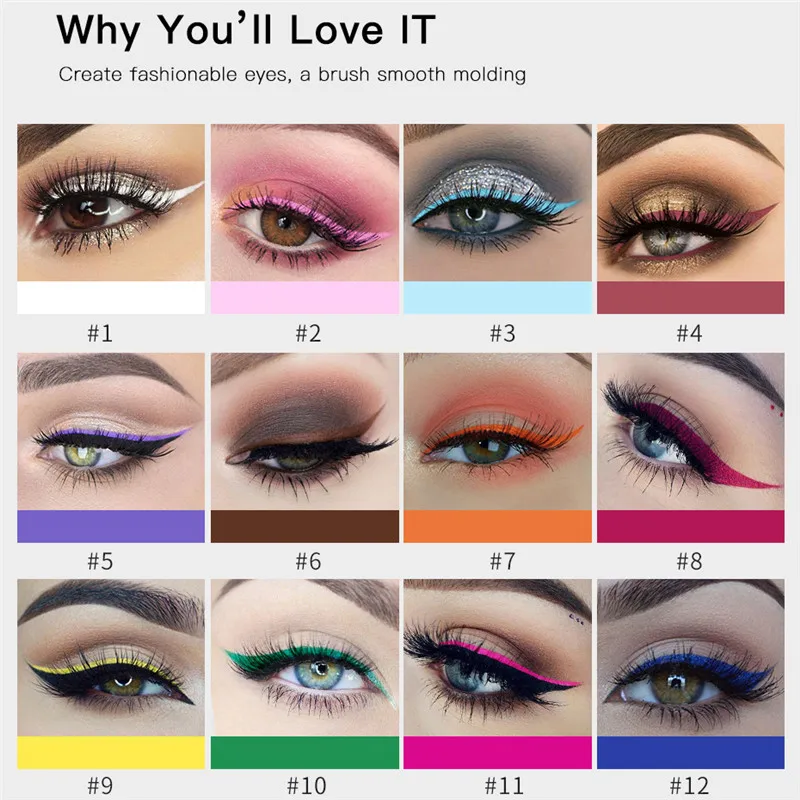 Жидкая матовая подводка для глаз, 12 цветов, водостойкая, легко наносится, макияж, матовая подводка для глаз, синий, красный, зеленый, коричневая подводка для глаз цветов