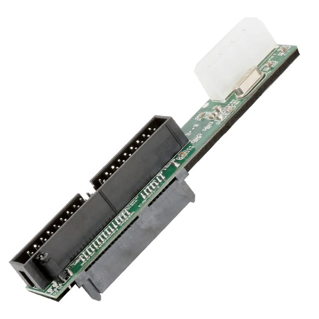 Преобразование интерфейсов жестких дисков IDE/PATA и SATA для использования с старыми/новыми компьютерными системами. Адаптер имеет разъемы питания SATA и передачи данных, а также разъемы IDE/Molex data и power.
