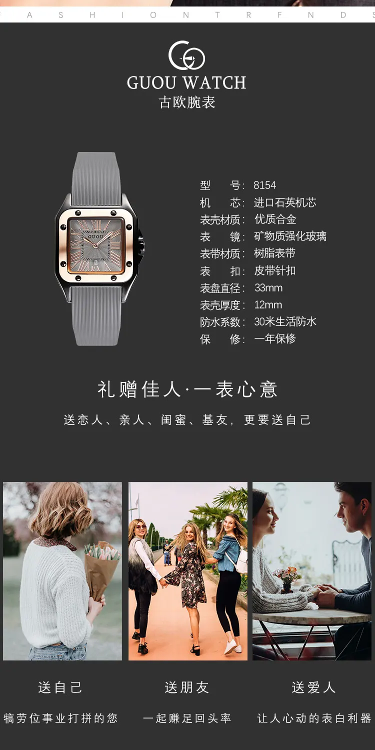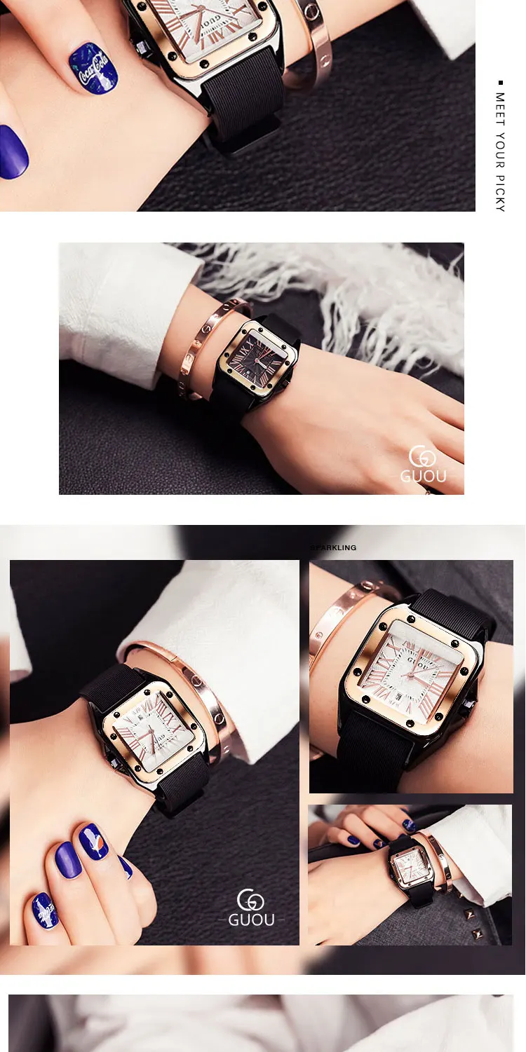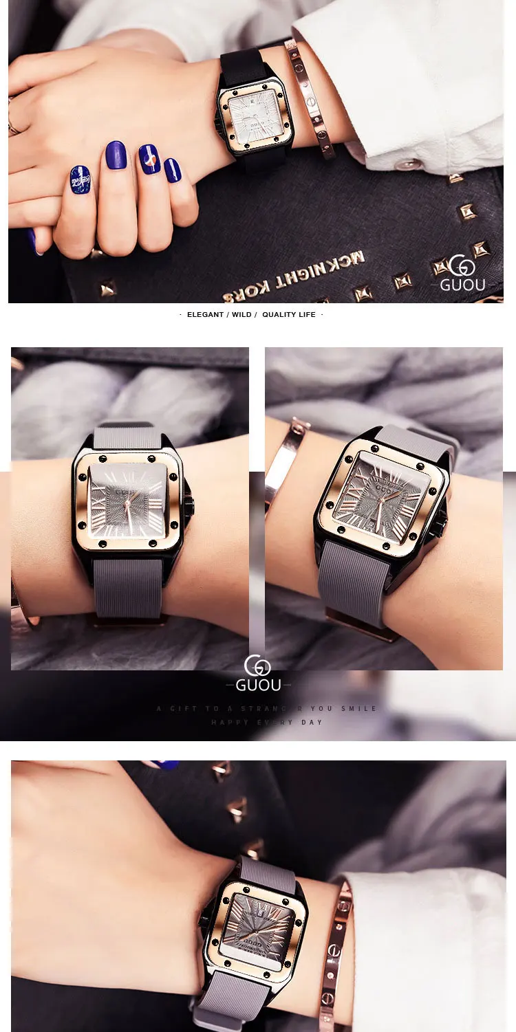 Часы GUOU женские кварцевые с прямоугольным циферблатом, модные люксовые, с кожаным ремешком