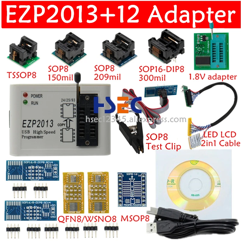 Полный комплект EZP2013 USB SPI программатор SOP8 тестовый зажим soic8/16 1,8 V адаптер гнездо flash bois EZP2010 EZP2019 Поддержка 24 25 EEPROM