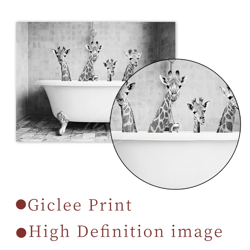 Настенная картина с изображением панды, жирафа, детского животного в ванне, Модульная картина, Постер в скандинавском стиле для детской комнаты