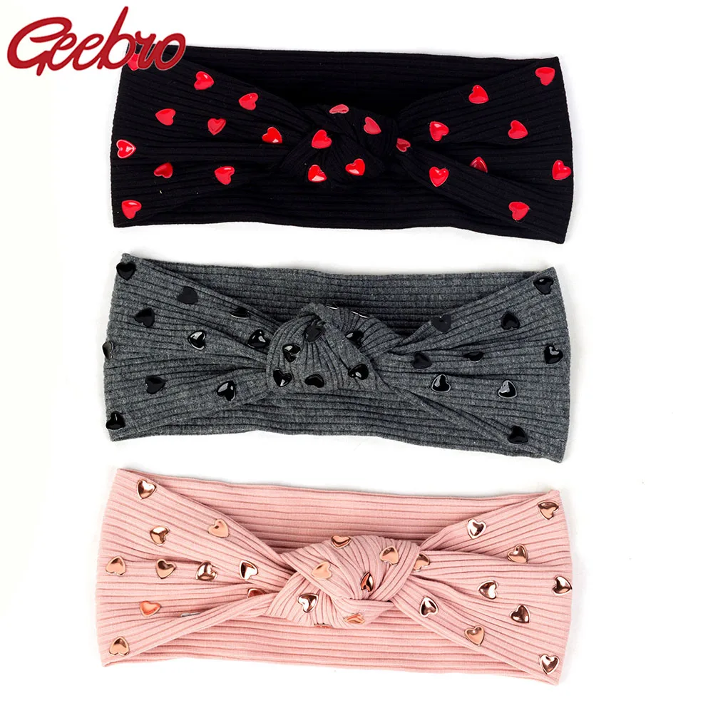 Повязка на голову для женщин Geebro, из мягкого эластичного хлопка, с узлом в виде сердца, тюрбан, аксессуары для волос