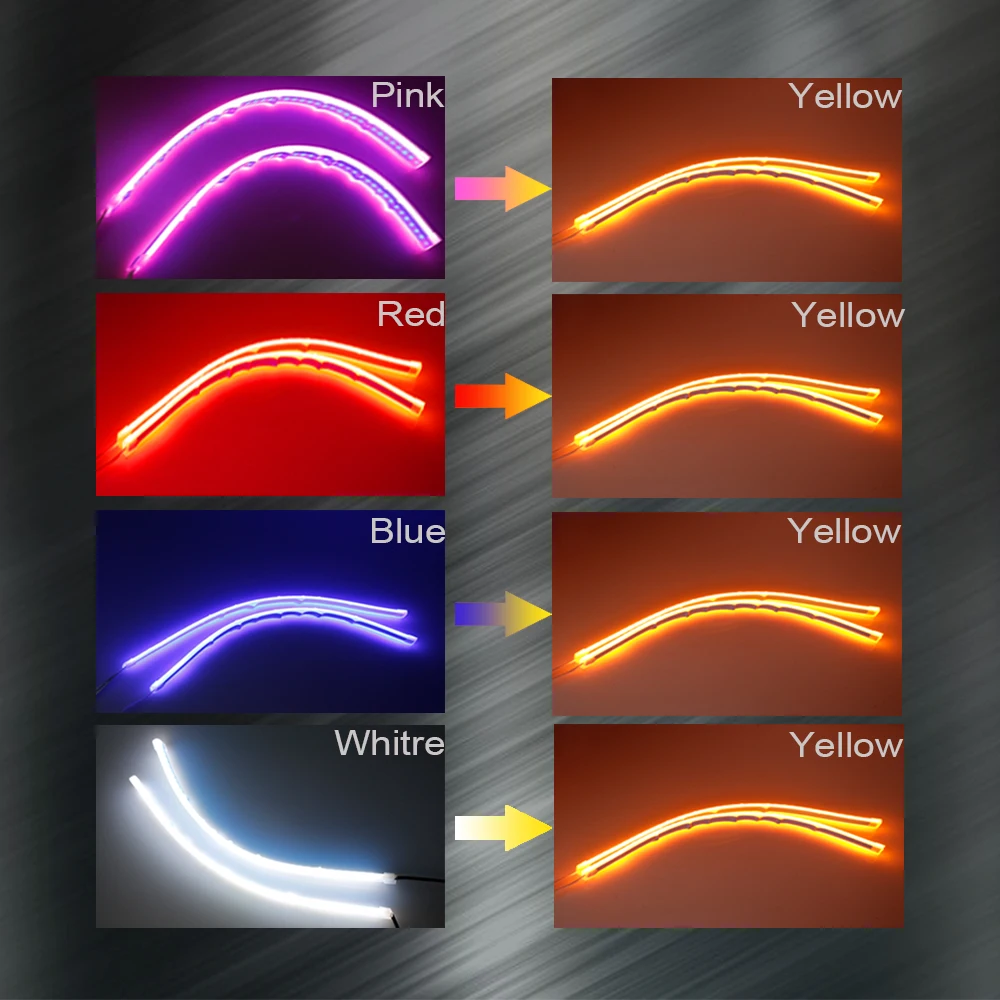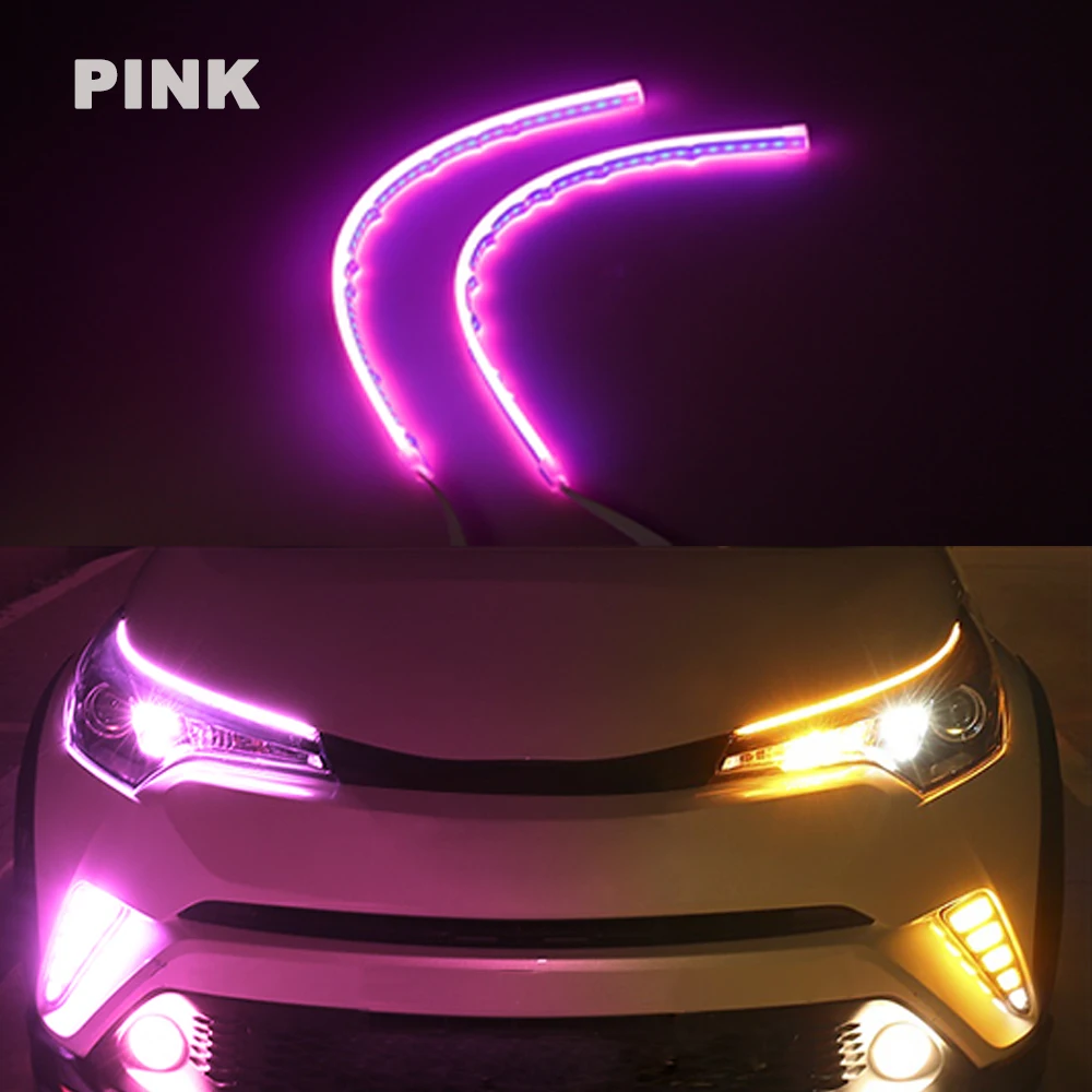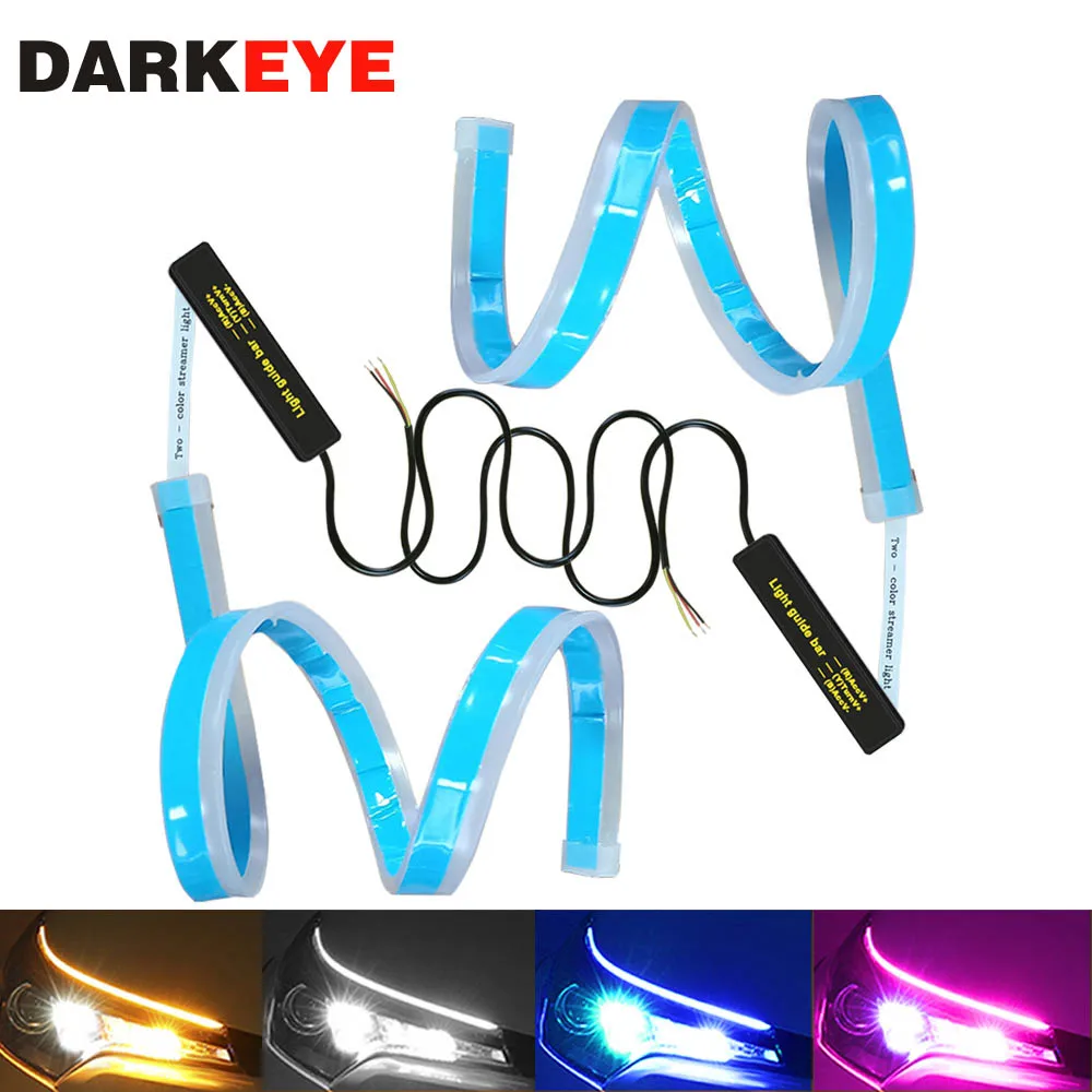 Гибкие Автомобильные светодиодные дневные ходовые огни DARKEYE, мягкие белые, красные, синие, желтые, розовые полосатые лампы для автомобильных фар, DJ
