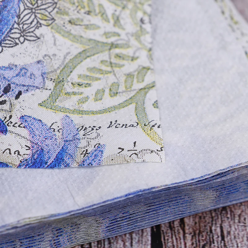 20 винтажная салфетка, бумажная ткань, фиолетовый цветок, синий пла...