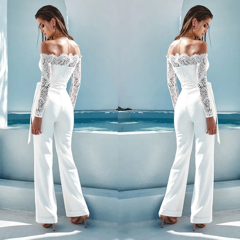 Женский кружевной комбинезон Goocheer, белый комбинезон с длинным рукавом и цветочным принтом, Клубная одежда, облегающие брюки для вечерние