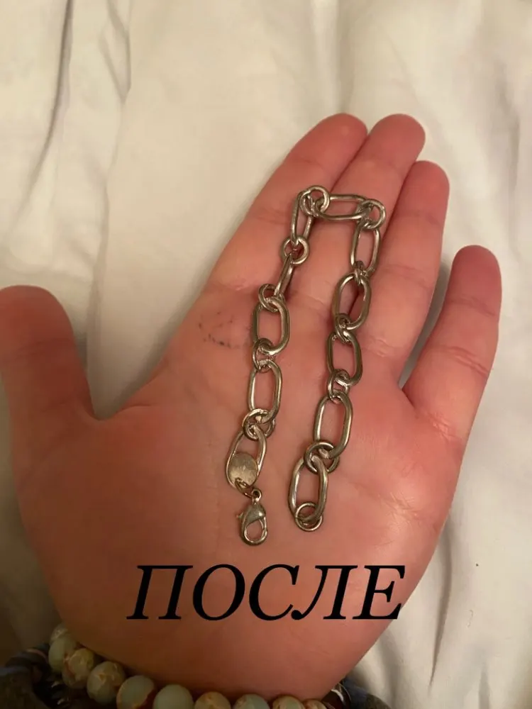 Браслет хороший: без дефектов и сколов. Лёгкий. На руке смотрится стильно. Но в первый же лень носки разогнулось звено. Хорошо, что дома. А так бы «оставила» на улице. Ну то есть большого качества за 130руб ожидать не стоит.