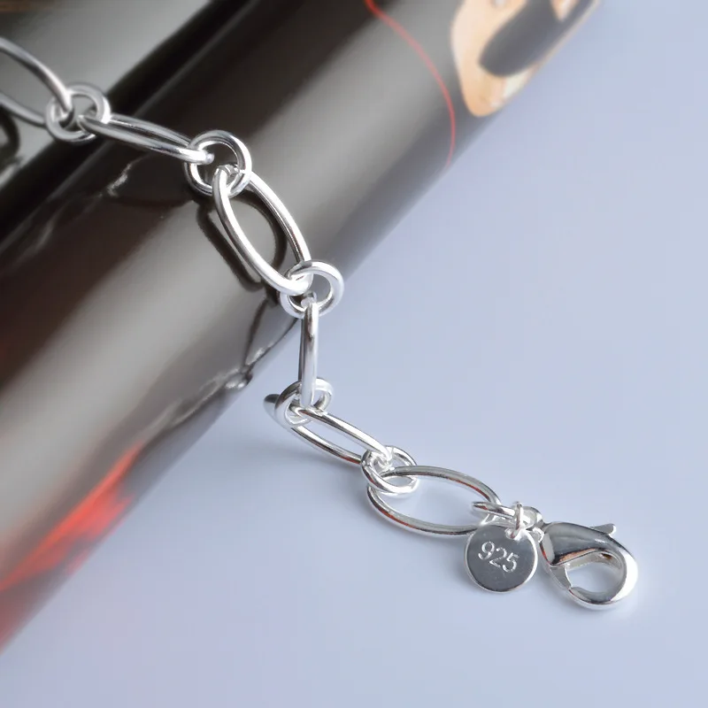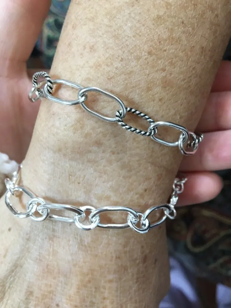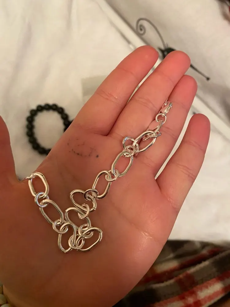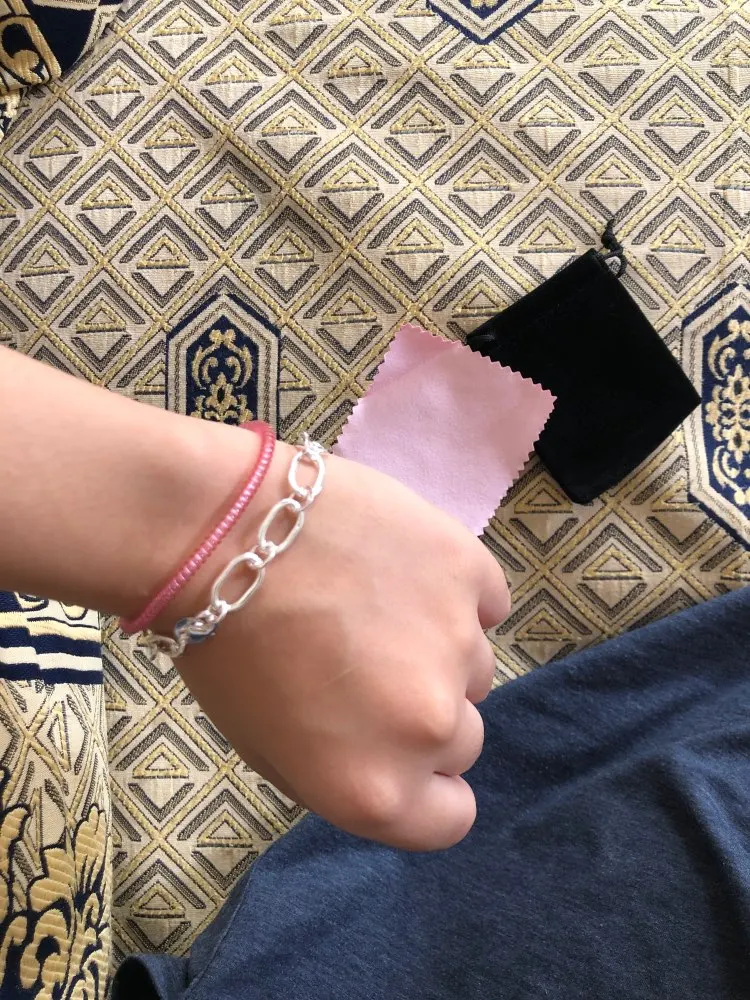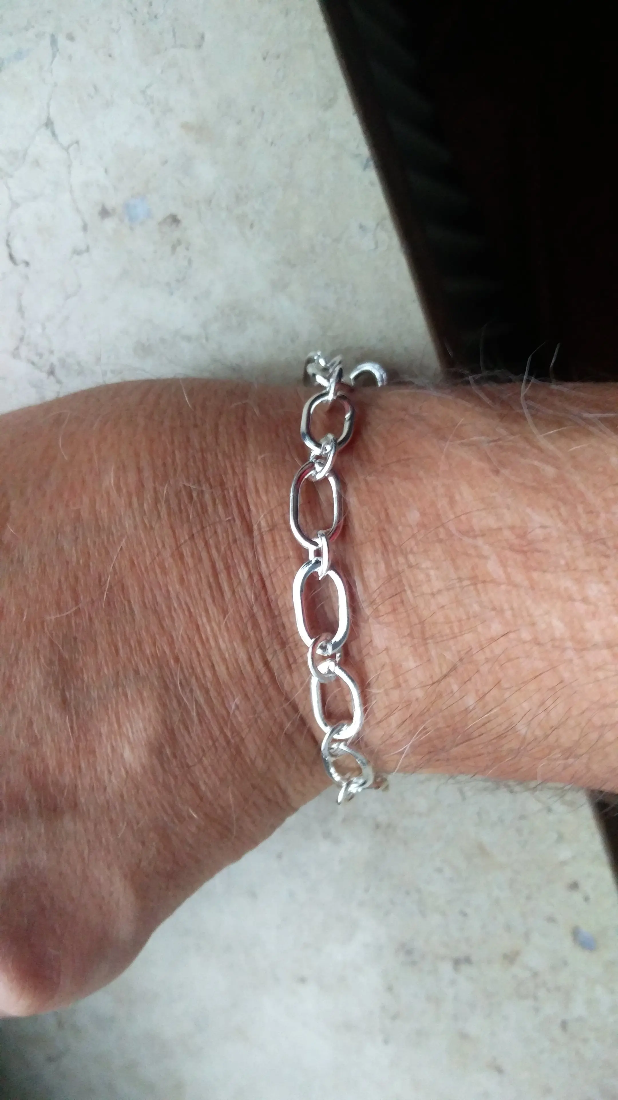 Заказываю не первый, из-за того то часто теряю. Звенья очень хлипкие, но на руке смотрится очень круто. Это не серебро. Но серебряное покрытие держится хорошо. Предыдущий потерянный браслет я носила больше полугода, практически не снимая,он потемнел в районе застежки только.