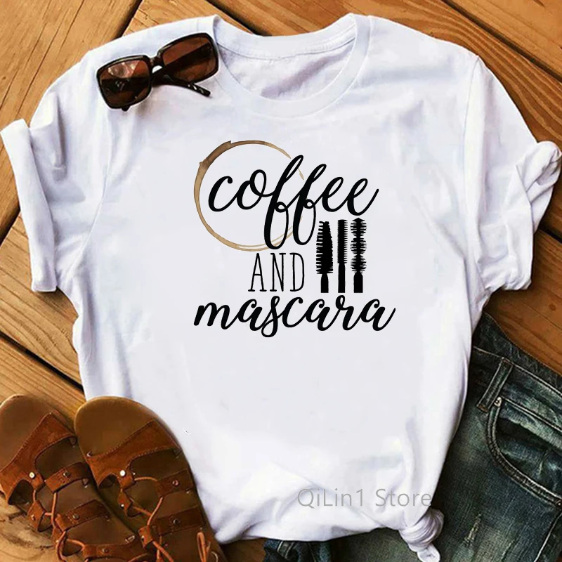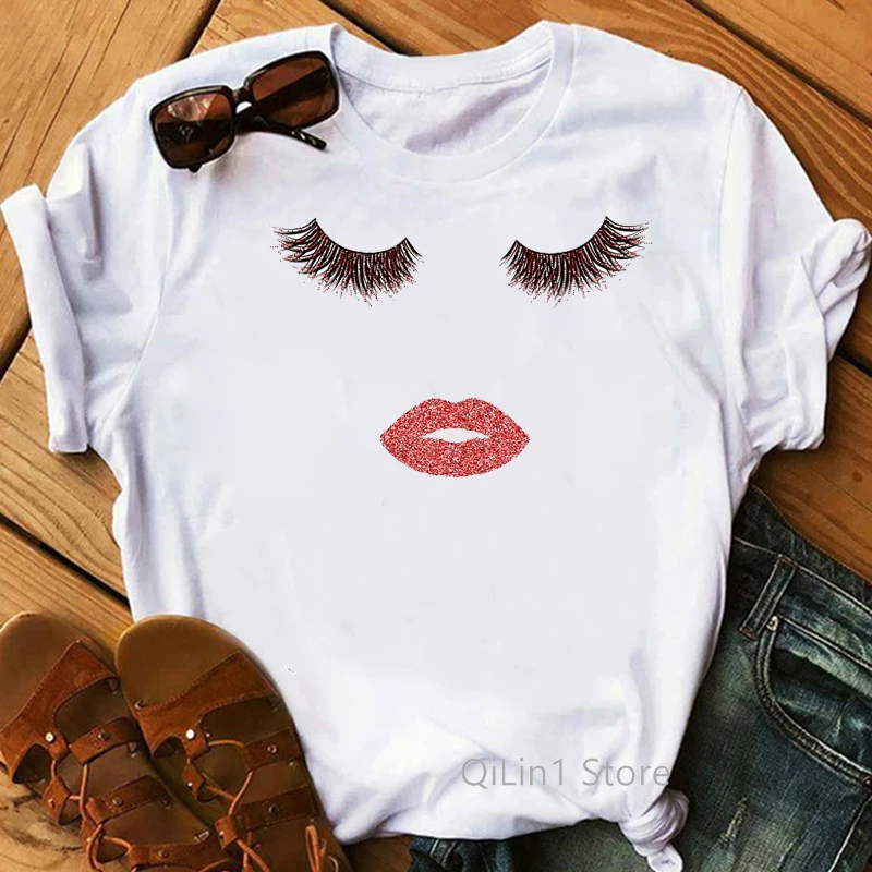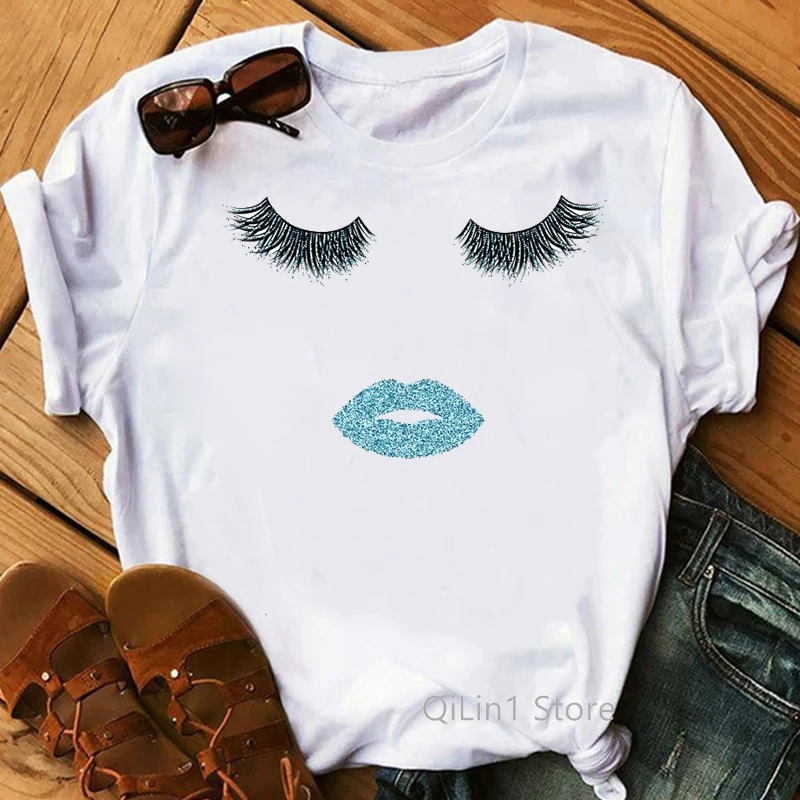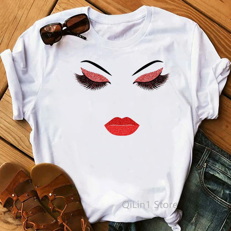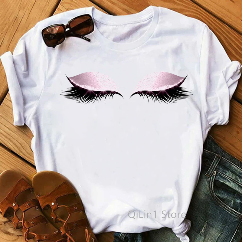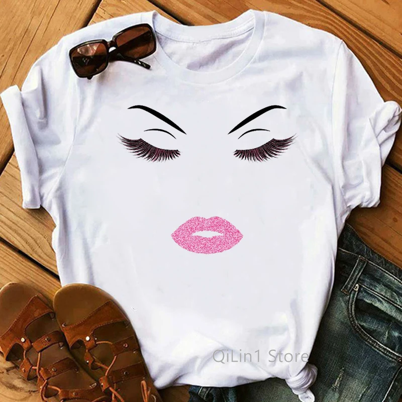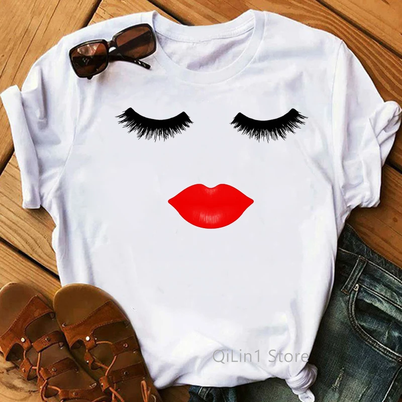 Футболка для макияжа губ и ресниц, женская одежда, Забавные футболки, женская футболка, женская футболка, Повседневная белая женская футболка, топы