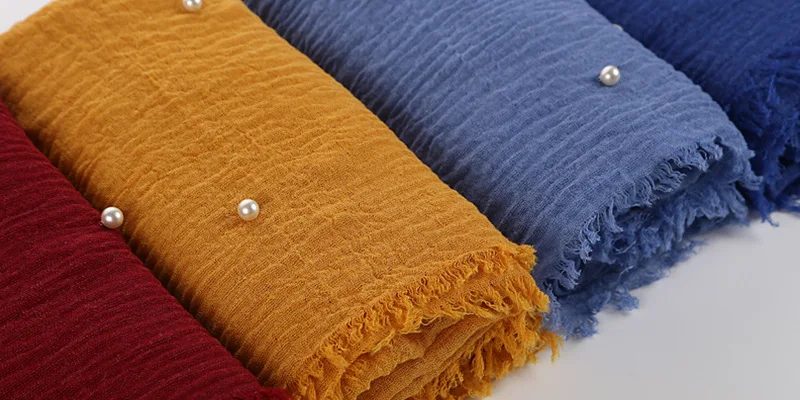 Хлопковый мусульманский шарф с пузырьками женский хиджаб головной платок женский качественный головной платок с бисером зимние мягкие плиссированные шали 180x95 см