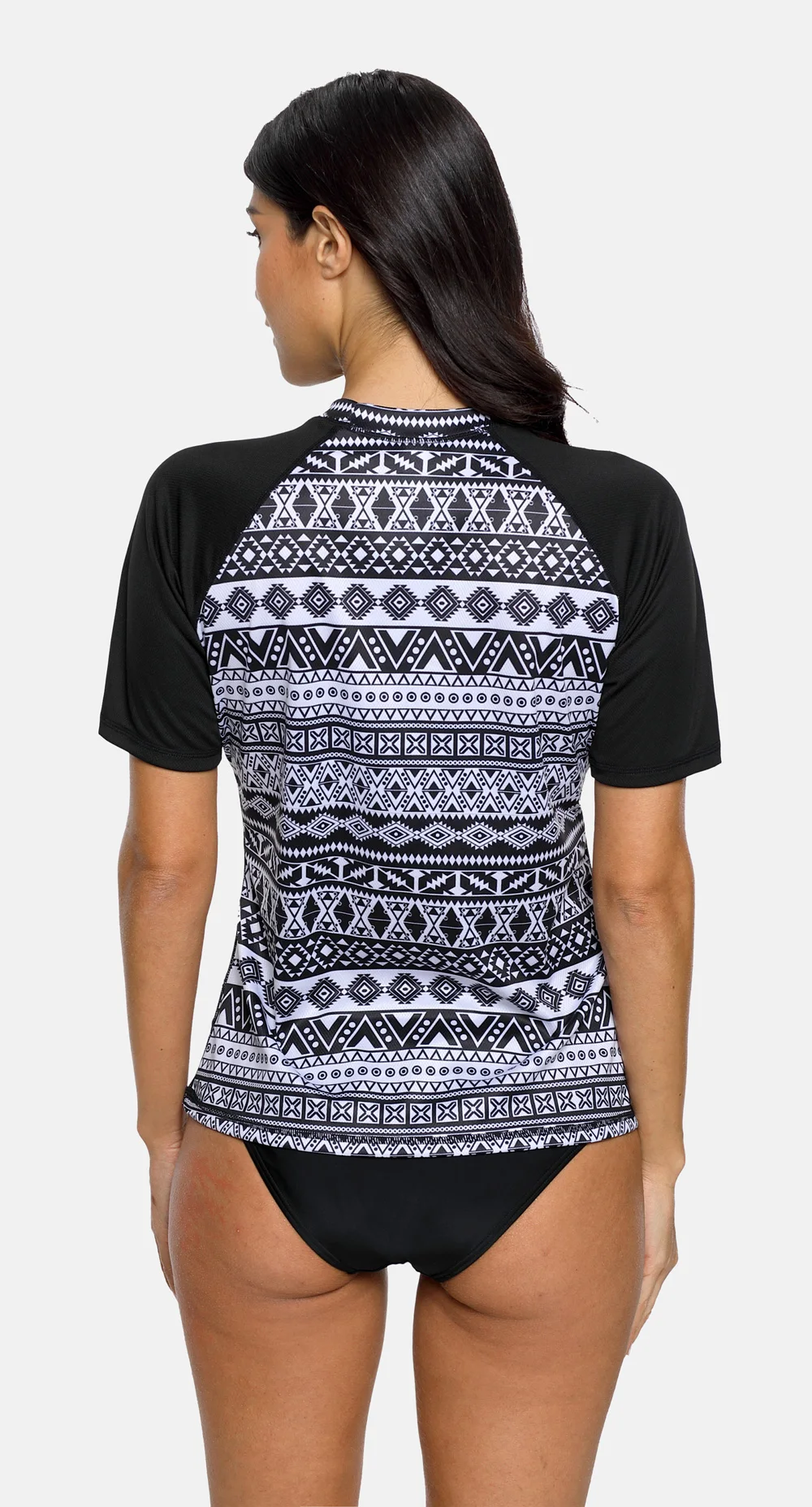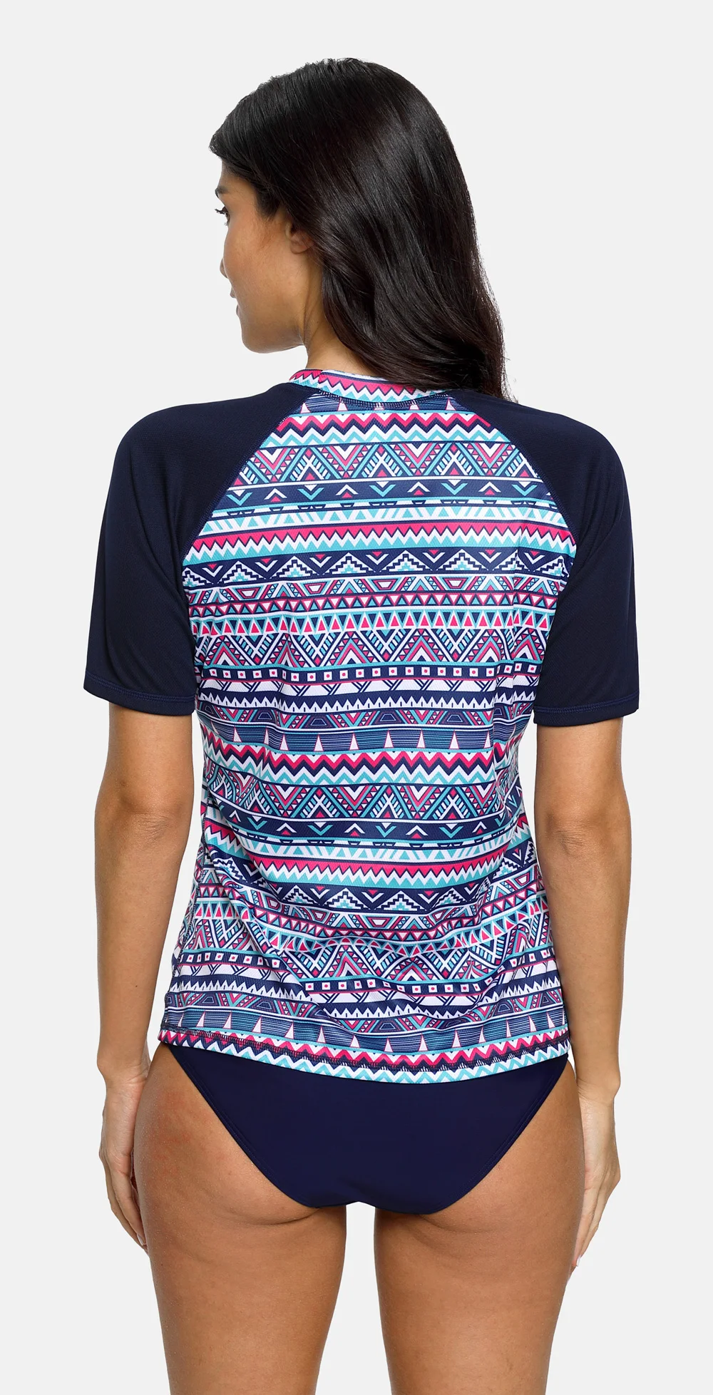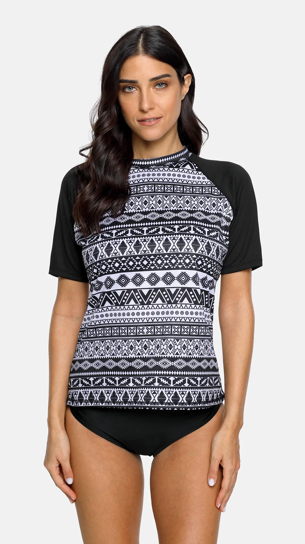 Женская быстросохнущая рубашка Anfilia, с коротким рукавом, Рашгард, топ в стиле ретро с геометрическим принтом, спортивный топ для бега, походные рубашки UPF50 +