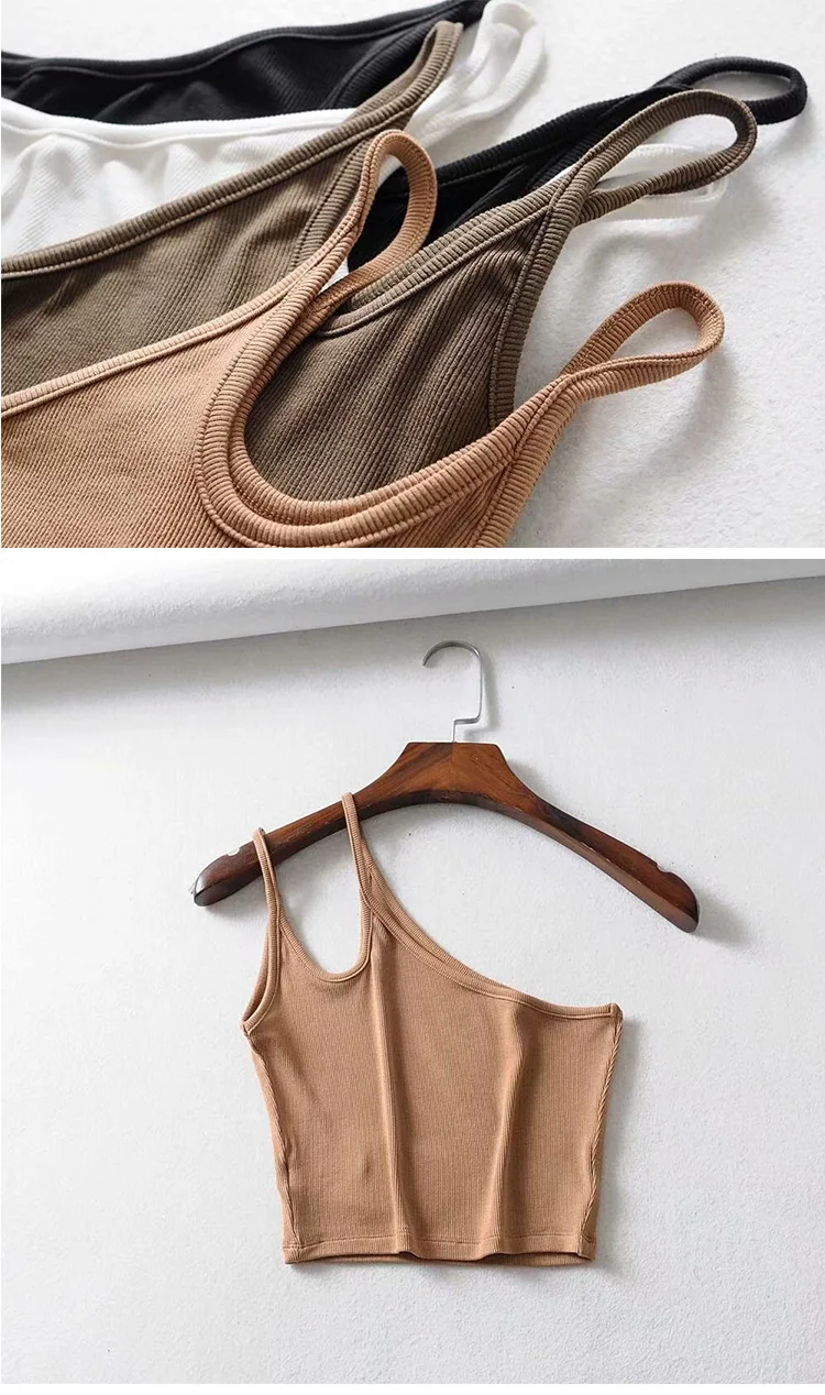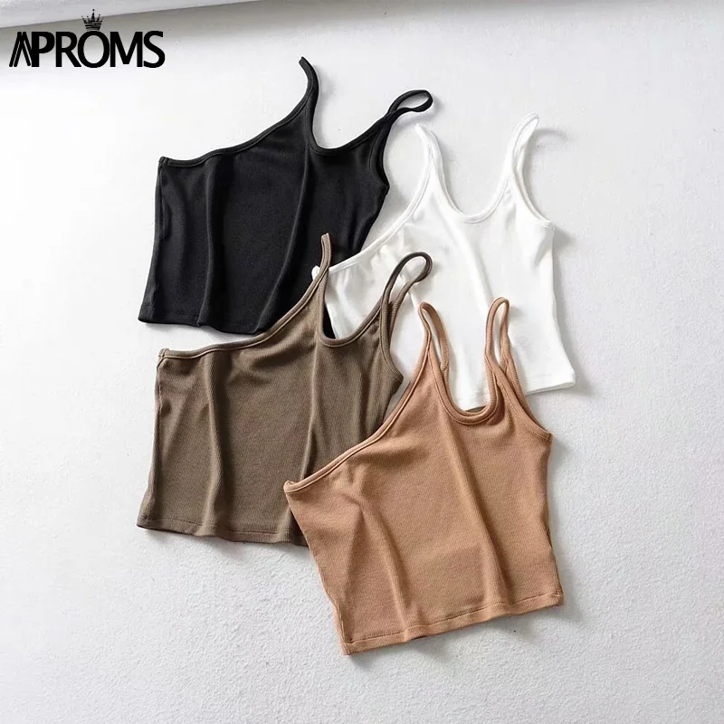 Женская майка на одно плечо Aproms, летняя Облегающая майка в рубчик с двумя бретелями, в стиле 90-х, 2020