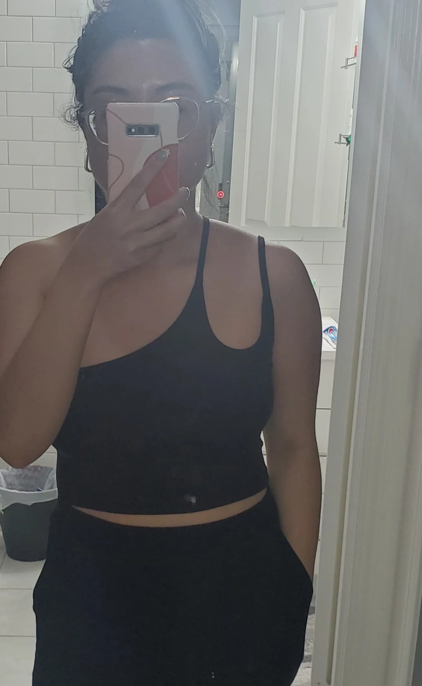 Очень мягкий, очень эластичный материал, мне бы хотелось иметь размер L или длиннее, так как это определенно укороченный топ. Продавец был не самым лучшим, когда я сообщал им, что на таможне была проблема, «неясное уведомление клиентов», которое возникло, но оно решило себя на нем.
