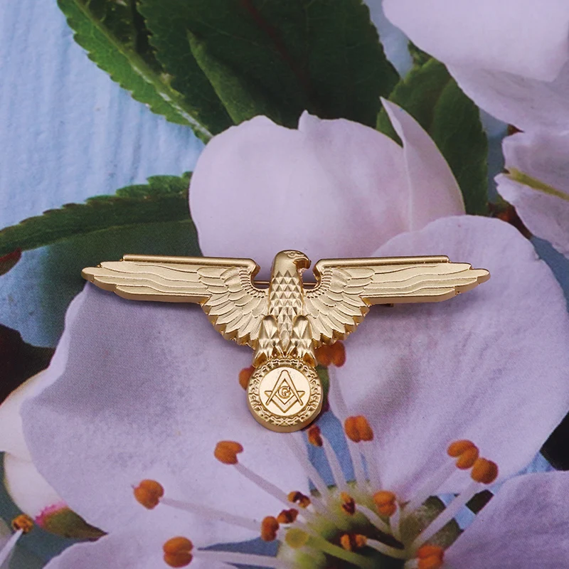 Эмалированная брошь в виде орла золотого цвета, масонская брошь, модный аксессуар для мужчин