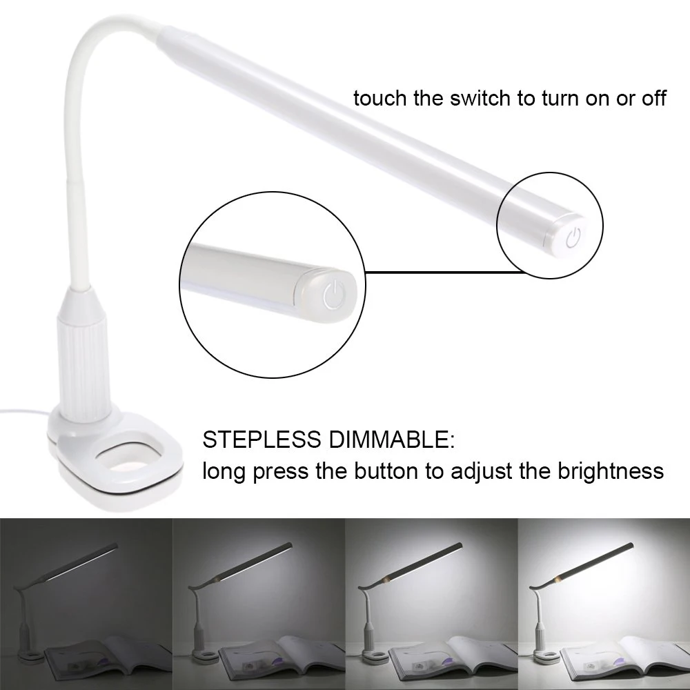 Светильник ingview 5 Вт, 24 светодиода, защитный зажим для глаз, светильник с зажимом, настольная лампа, плавная регулировка яркости, гибкая, USB питание, сенсорный датчик, управление, настольная лампа для чтения