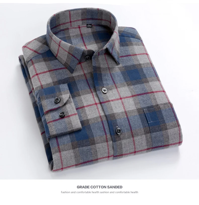 Осенняя теплая рубашка высокого качества из 100% хлопка с длинными рукавами, повседневные рубашки с отложным воротником, удобные мужские топы в клетку