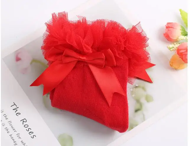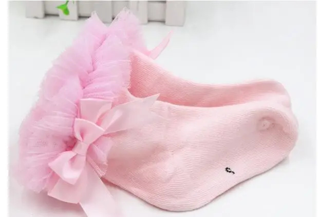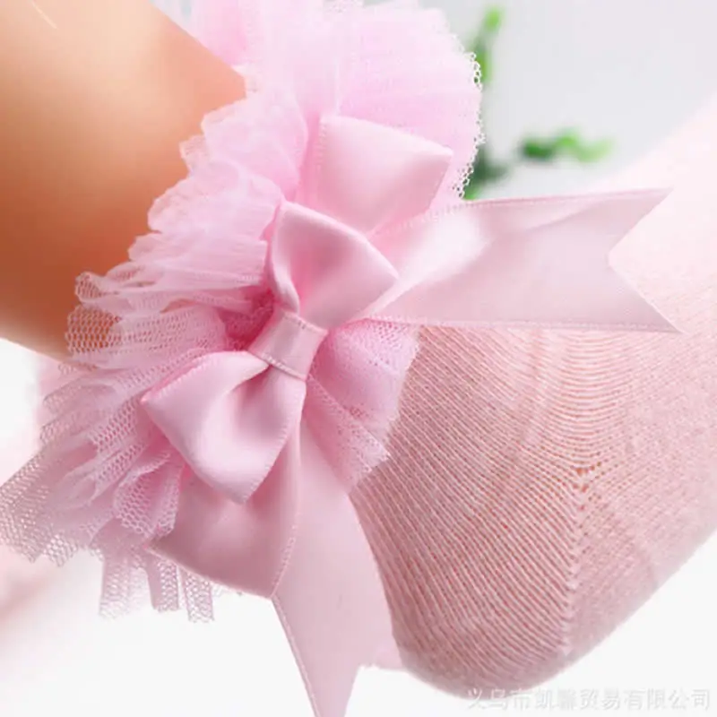 Гольфы для маленьких девочек кружевные носки принцессы для новорожденных девочек носки с бантиком г., хлопковые чулки г., мягкие короткие носки с рюшами и оборками