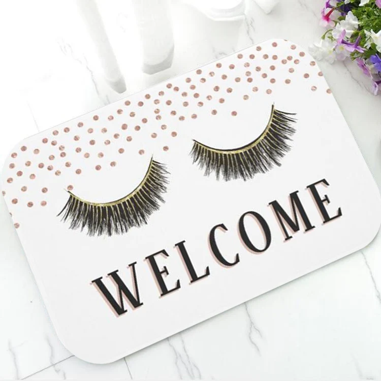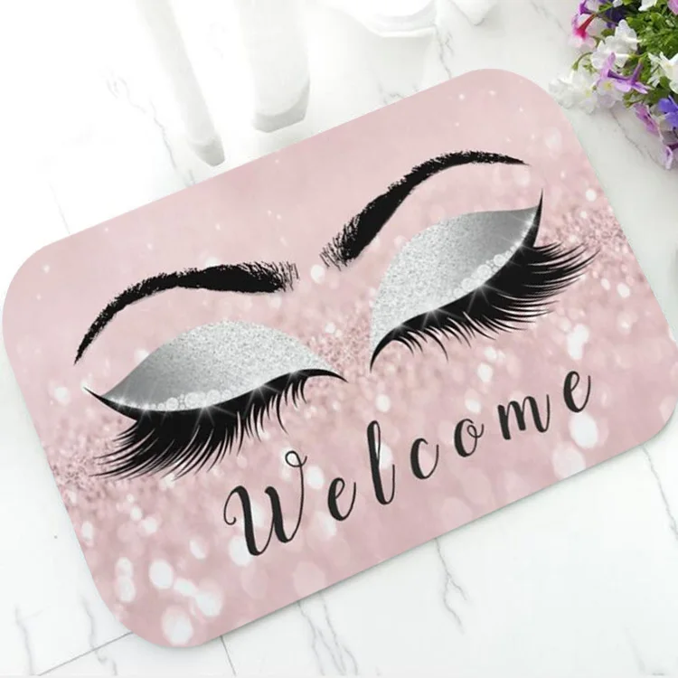 Модные блестящие ресницы из розового золота, дверной коврик, блестящий резиновый коврик для макияжа, ковер, шикарный домашний декор для студии красоты