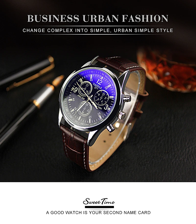 Мужские кварцевые наручные часы, модный подарок, синий свет, мужской деловой повседневный деловой элегантный наручный браслет YAZOLE с кожаным ремешком