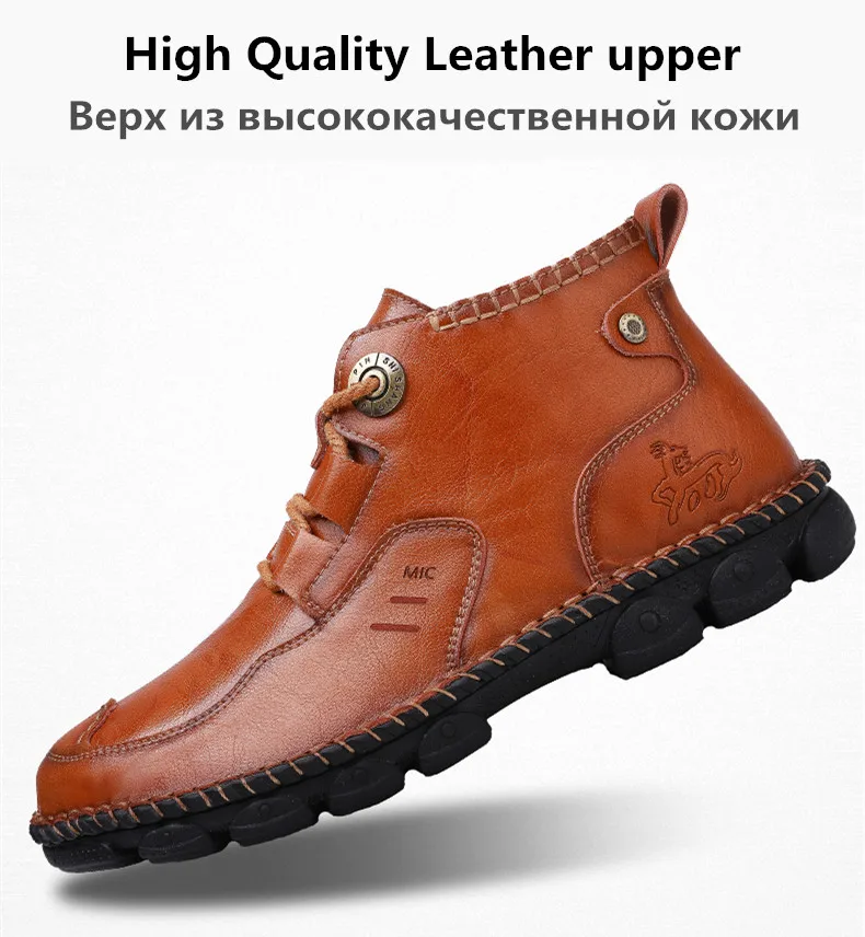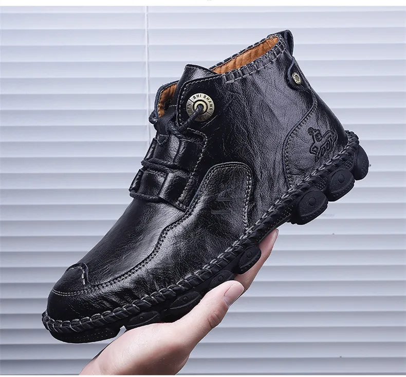 Мужские кожаные ботинки Осень-Зима водонепроницаемые Нескользящие и...