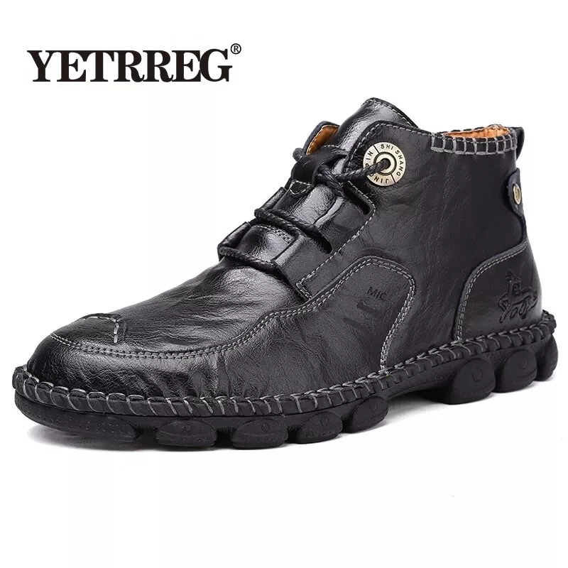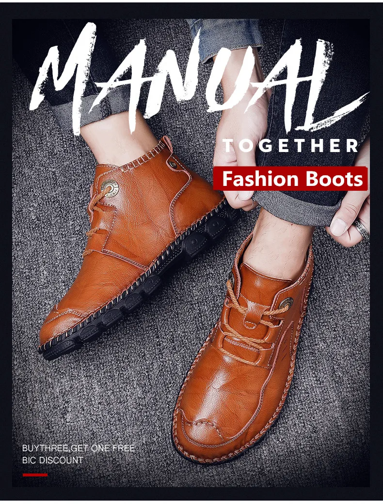 Новые мужские рабочие ботинки Осень-зима кожаные мужские Ботильоны ...
