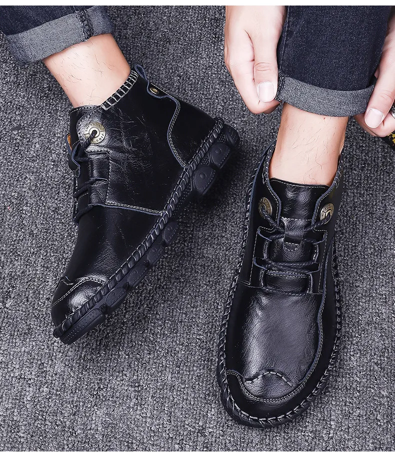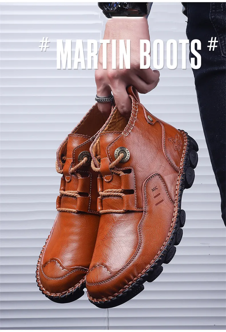 Мужские кожаные ботинки до щиколотки, Осень-зима, мужская обувь, ка...