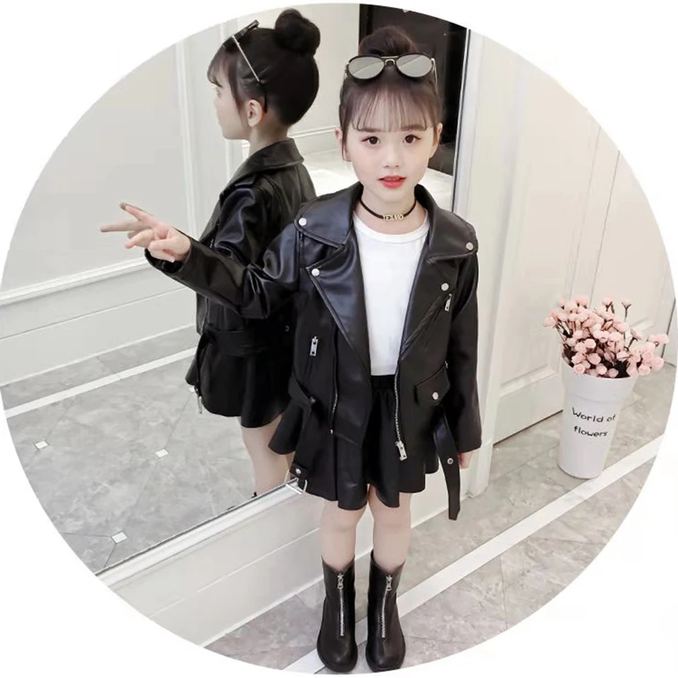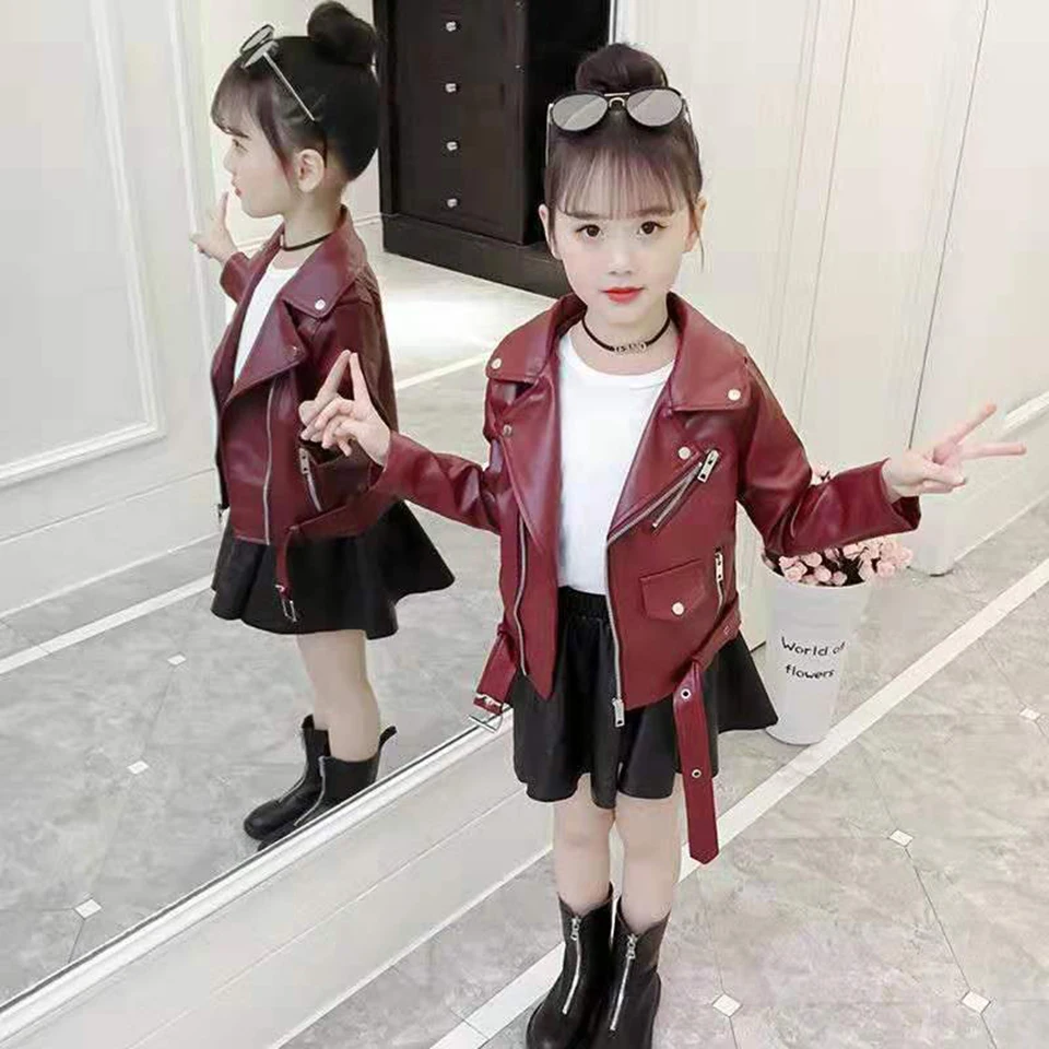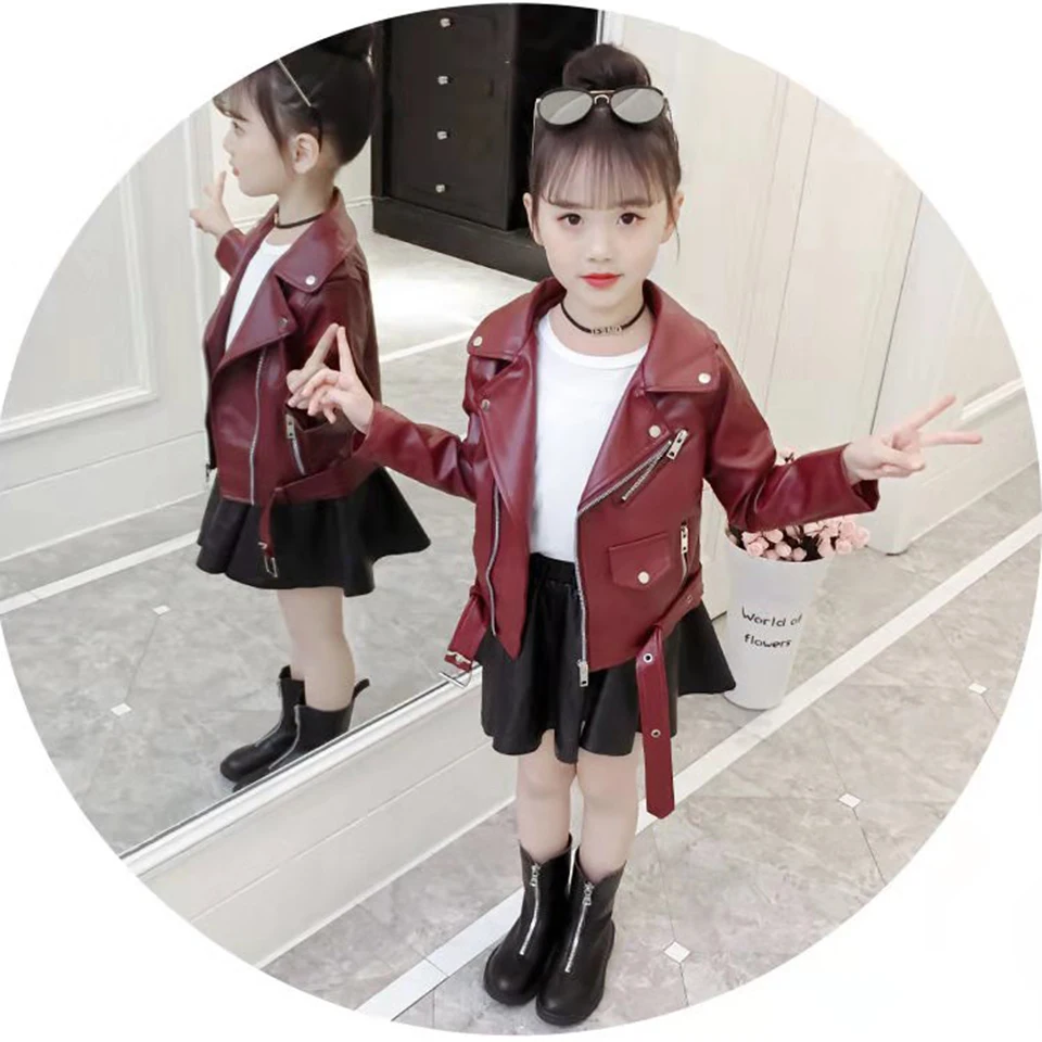 Осеннее Детское пальто для девочек Теплые Куртки из искусственной кожи для маленьких девочек модные однотонные весенние куртки для детей Верхняя одежда для девочек от 3 до 12 лет