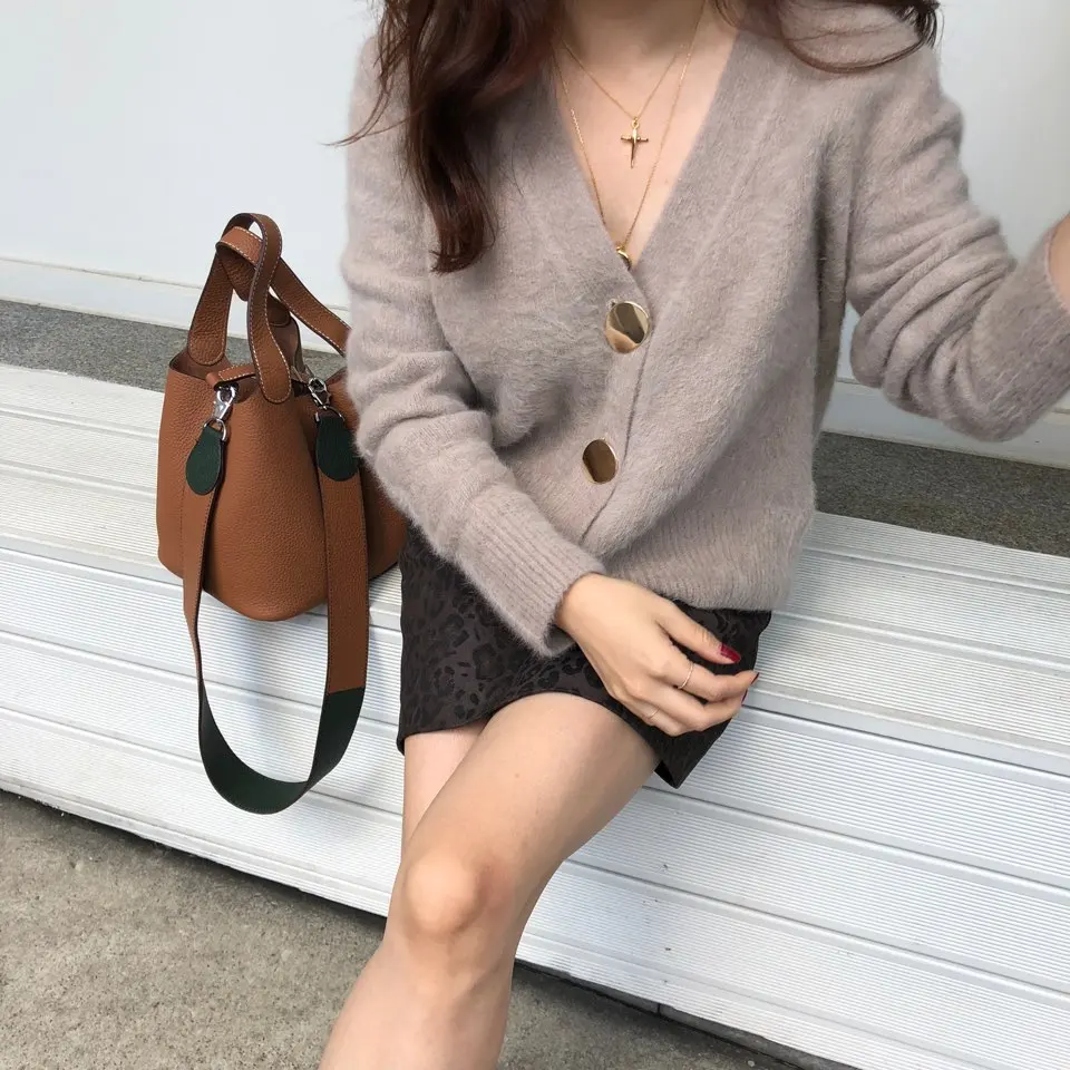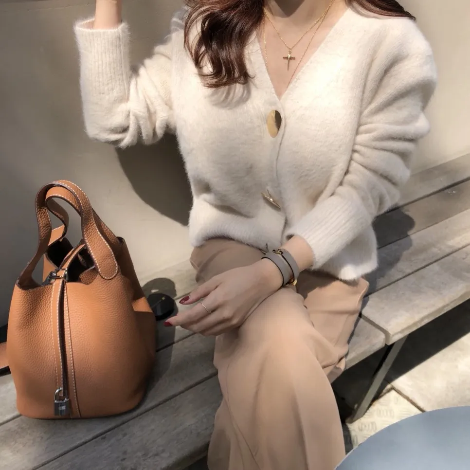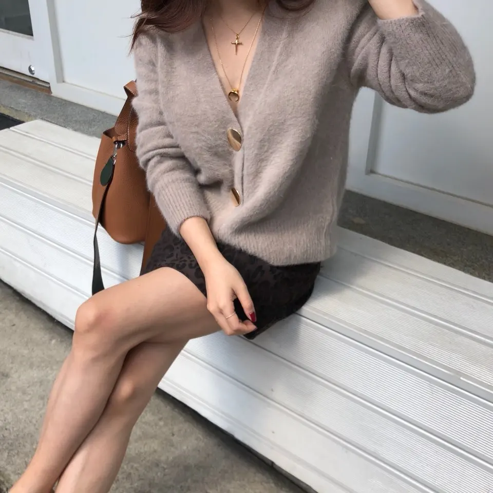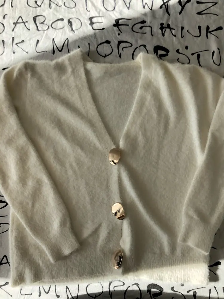 Женский трикотажный свитер SMTHMA, мохеровый кардиган, утепленный жакет с длинными рукавами, джемпер на одной пуговице, Осень-зима