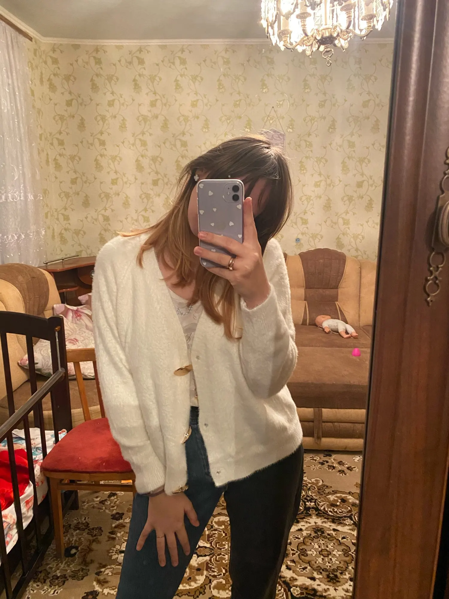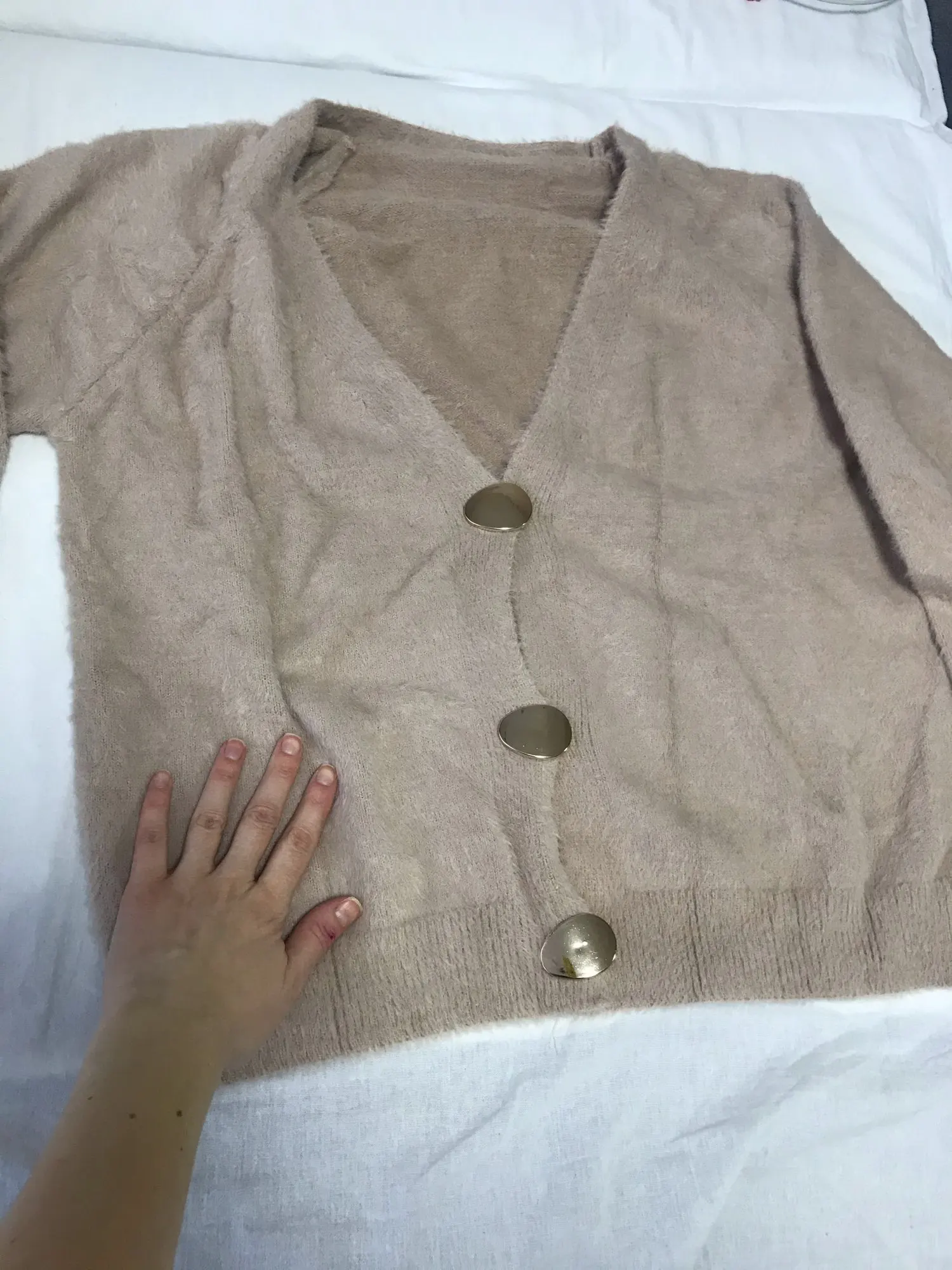Сам по себе кардиган хороший. Ткань такая ворсистая, мягкая, цвет приятный . Но на мои параметры 169- 54 кг, он прям очень очень оверсайз. Надо будет отдавать точно в ателье. Но так если бы не размер было бы идеально , но увы и ах он единый.