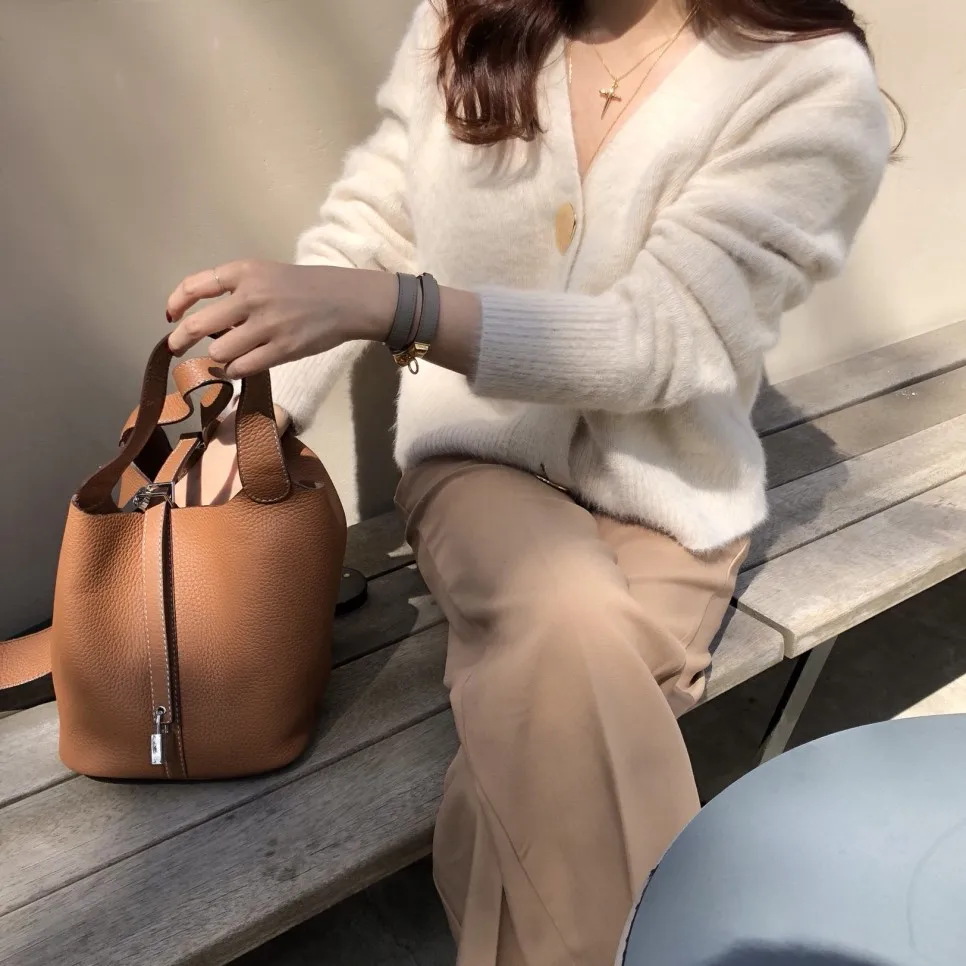 тёплый, мягкий. но белый кардиган меньше, чем кофейный.