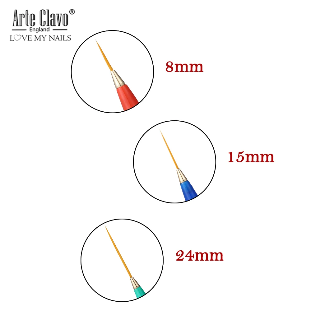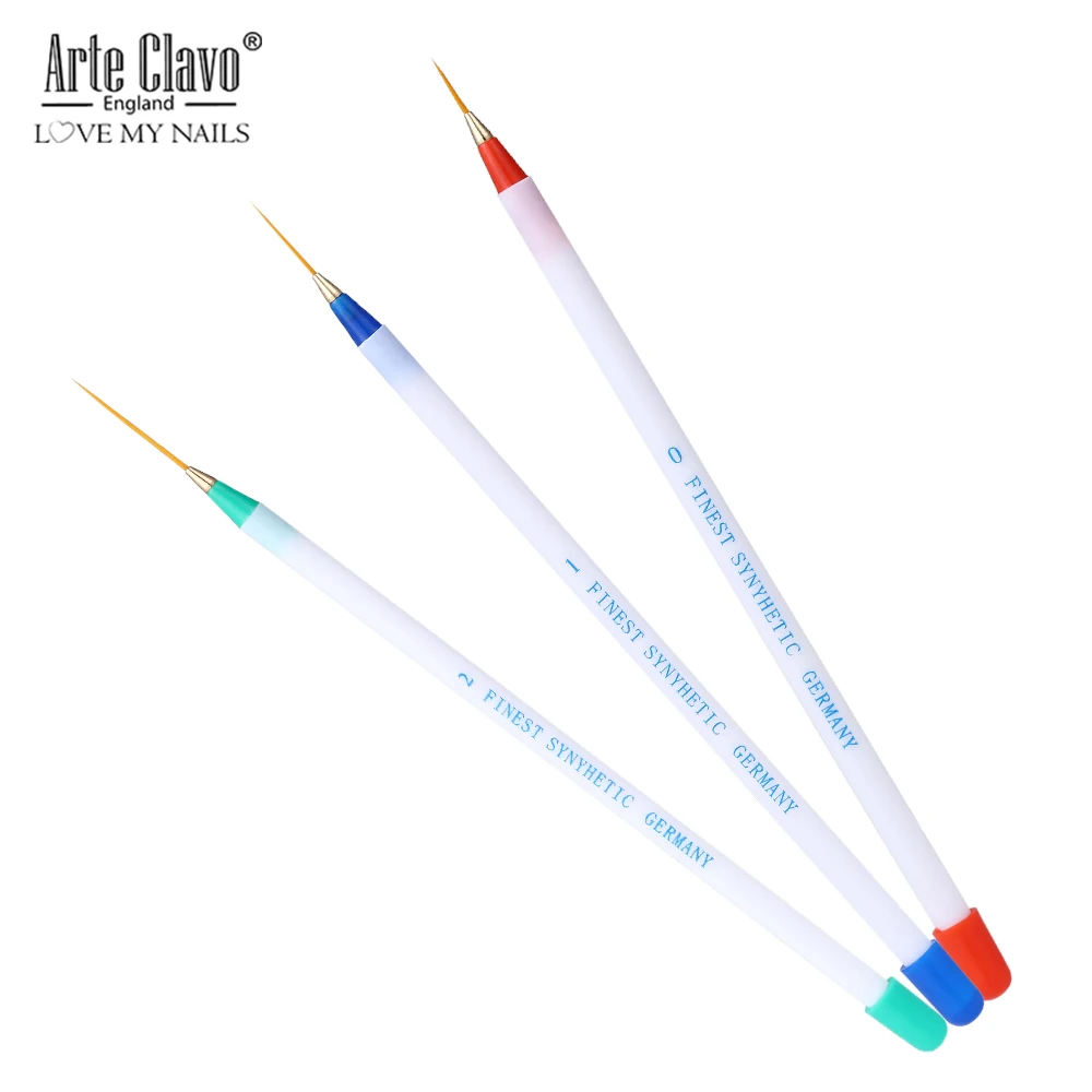 Кисти для дизайна ногтей Arte Clavo, 3 шт., тонкие акриловые кисти ручка-лайнер для рисования, маникюрные инструменты для ногтей, УФ-гель для ногтей