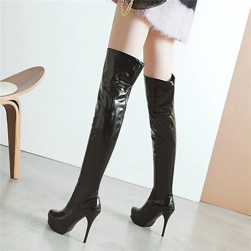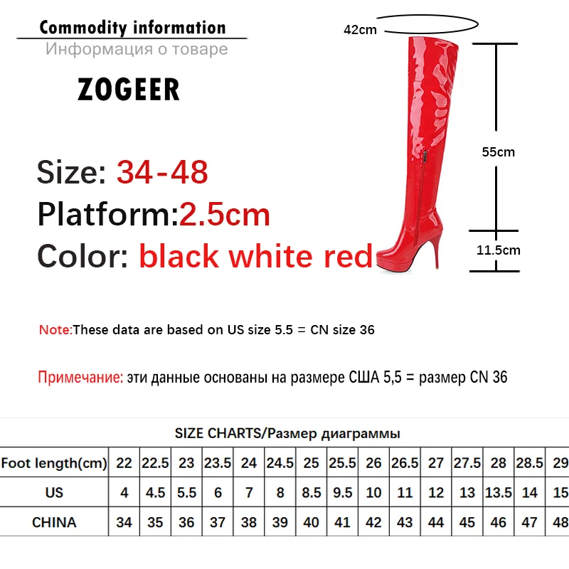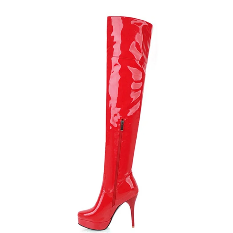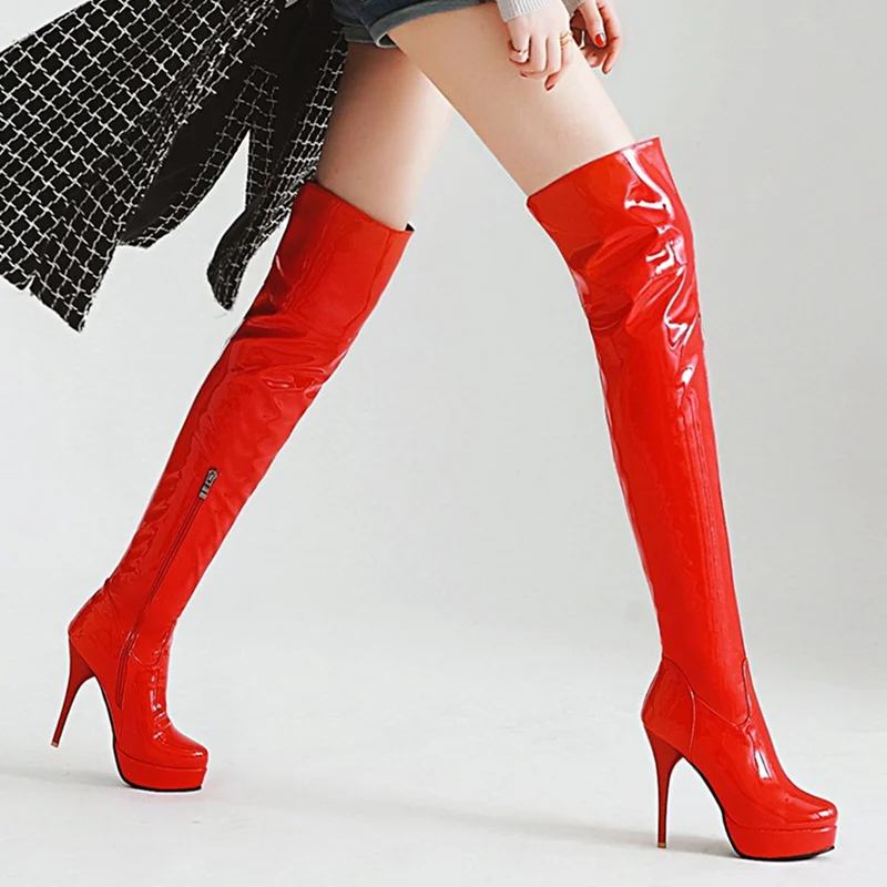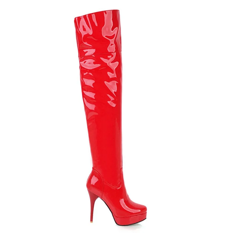 Сапоги женские осенне-зимние выше колена, на платформе, на высоком каблуке, красные, белые, фетиш, размер 48