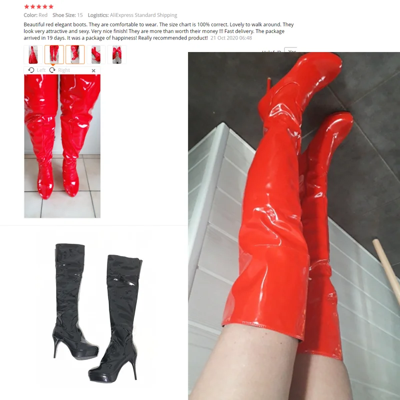 Красивые красные элегантные ботинки. Удобно носить. Таблица размеров на 100% верна. Приятно ходить. Они выглядят очень привлекательно и соблазнительно. Очень хорошая отделка! Они больше, чем стоят своих денег! Быстрая доставка. Посылка прибыла в течение 19 дней. Это была упаковка счастья! Действительно рекомендуемый товар!