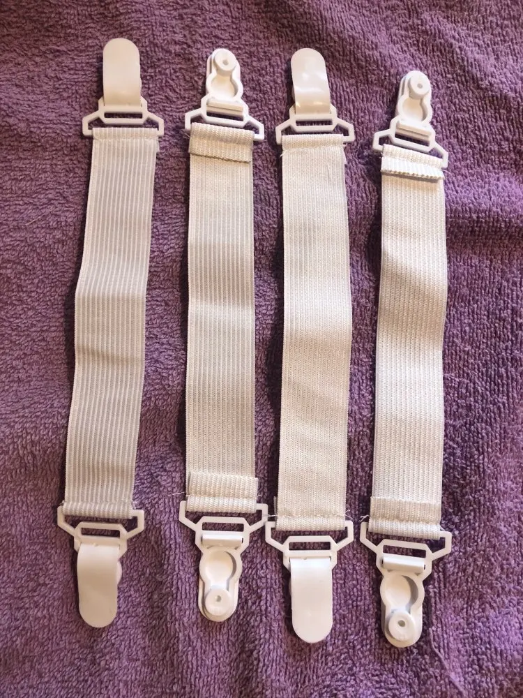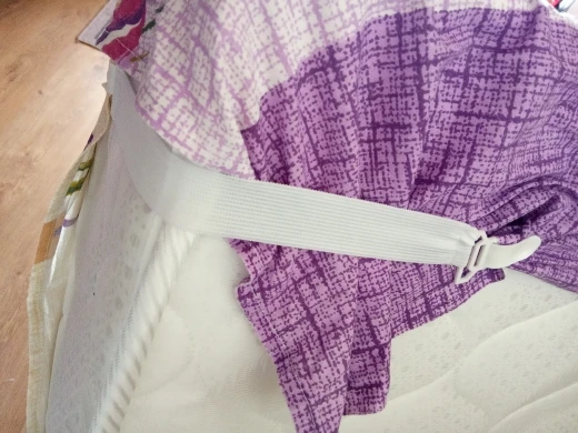 нужно приноровиться ими пользоваться. небольшой лайфхак: если простынь маленькая можно цеплять как у меня на фото (из-за размера простыни и матраса длины резинки на держателе не хватает, чтоб завести её под матрас, и я стала делать так как показано на фото, возможно кому-то будет полезно). простынь так достаточно хорошо держится. рекомендую.