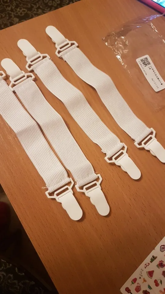 классные штуки! надеваются на простынь легко, но думаю на толстую ткань не подойдут. парень мой так и не понял как их цеплять, бросил всё это дело и сказал что первой же ночью они сломаются и отвалятся, и вообще они выглядят ненадёжно. но первую ночь они успешно выдержали, ничего никуда не уползло, не сломалось - кайф я очень довольна, определённо буду использовать и жалею что не заказала раньше. приехали быстро, в одном пакете с остальными товарами
