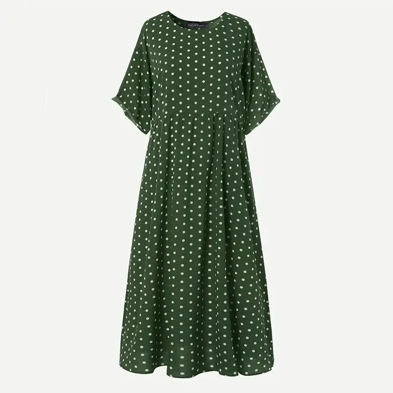 Осеннее длинное платье в горошек ZANZEA, винтажное женское платье и...