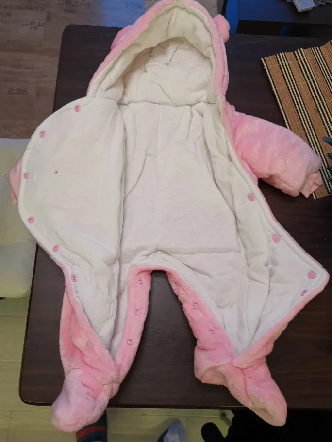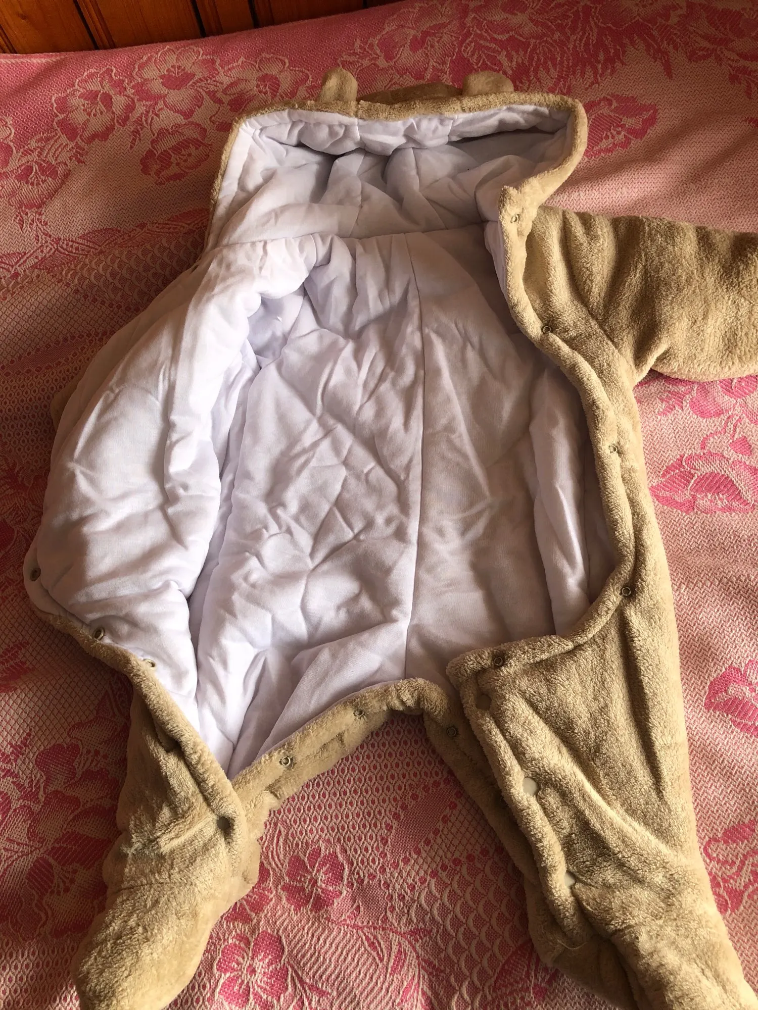комбинезон просто супер. очень мягкий и тёплый. как раз на зиму. я взяла самый маленький размер, думаю до 4х месяцев нормально будет. внутри материал как будто хлопок,точно не знаю. кнопки хорошо застёгиваются,очень удобно. рекомендую. даже не сомневайтесь,будите довольны на 100%. спасибо огромное продавцу