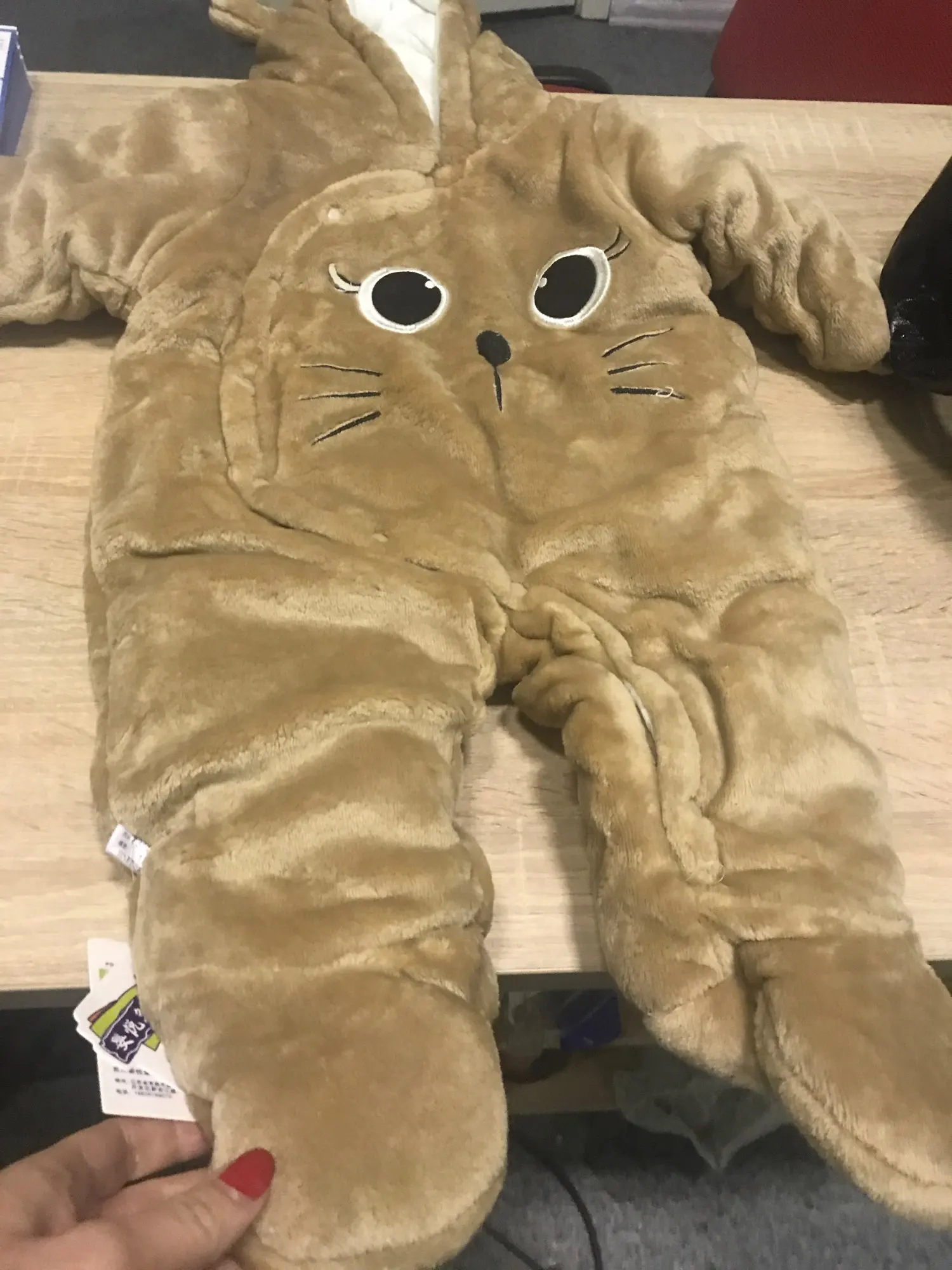 комбез-плюш) очень милый ) шел долго , специально заказала немного навырост , сейчас на весну в самый раз . много торчащих ниток и запах синтетики ..(((
