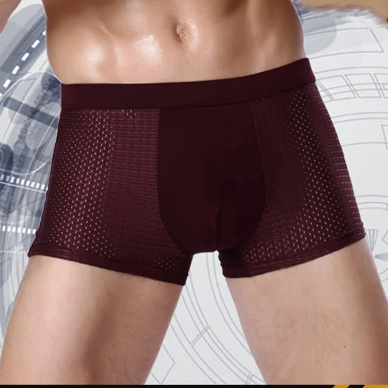 Трусы-боксеры мужские, мужские шорты-боксеры, однотонные, сетчатые, дышащее волокно из бамбука, нижнее белье