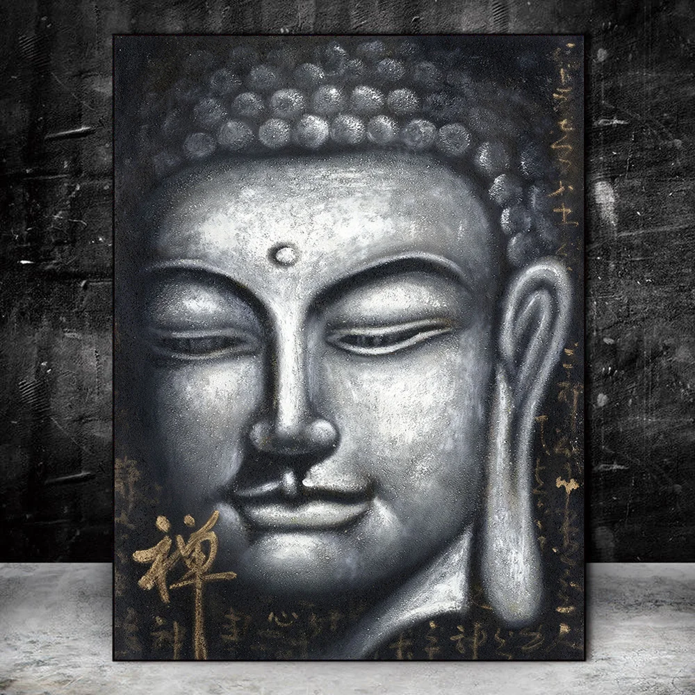Винтажная Масляная картина будды серебряного цвета, печать на Cnavas, художественные принты в китайском стиле, буддизм, холст, художественные принты, настенные картины, домашний декор