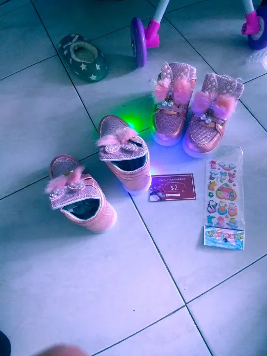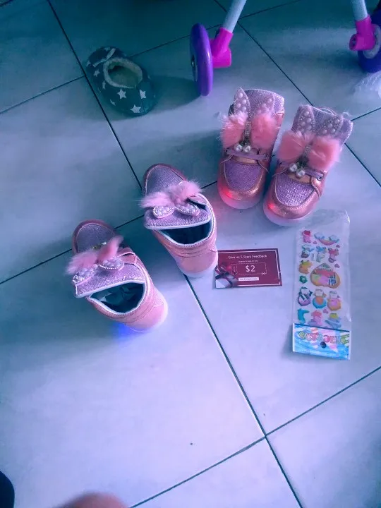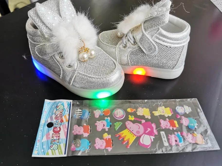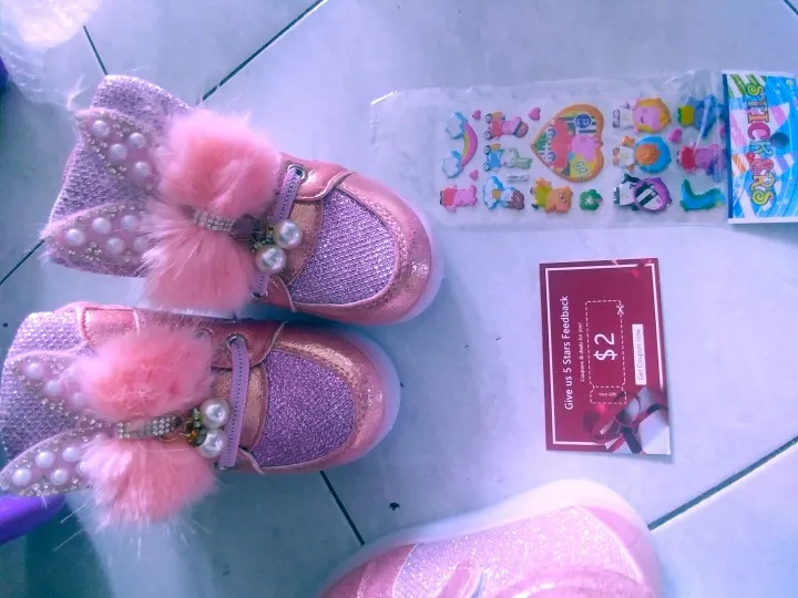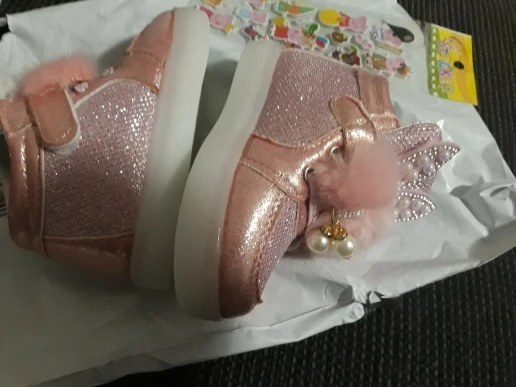 Туфельки пришли, все работает, светятся плюс был маленький подарочек(наклейки). Дочь довольна.