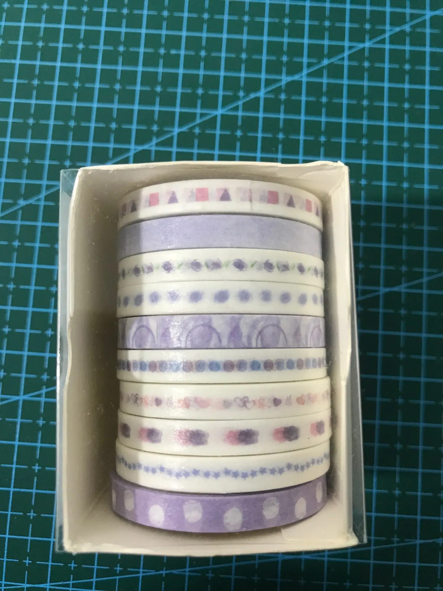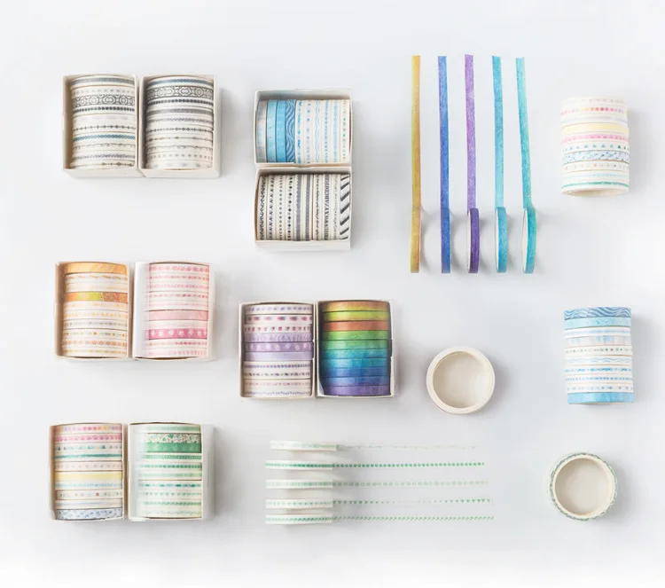 Милая лента, 10 тонких и узких Васи-лент, 1/2 см в ширину, в коробке. Как на фото