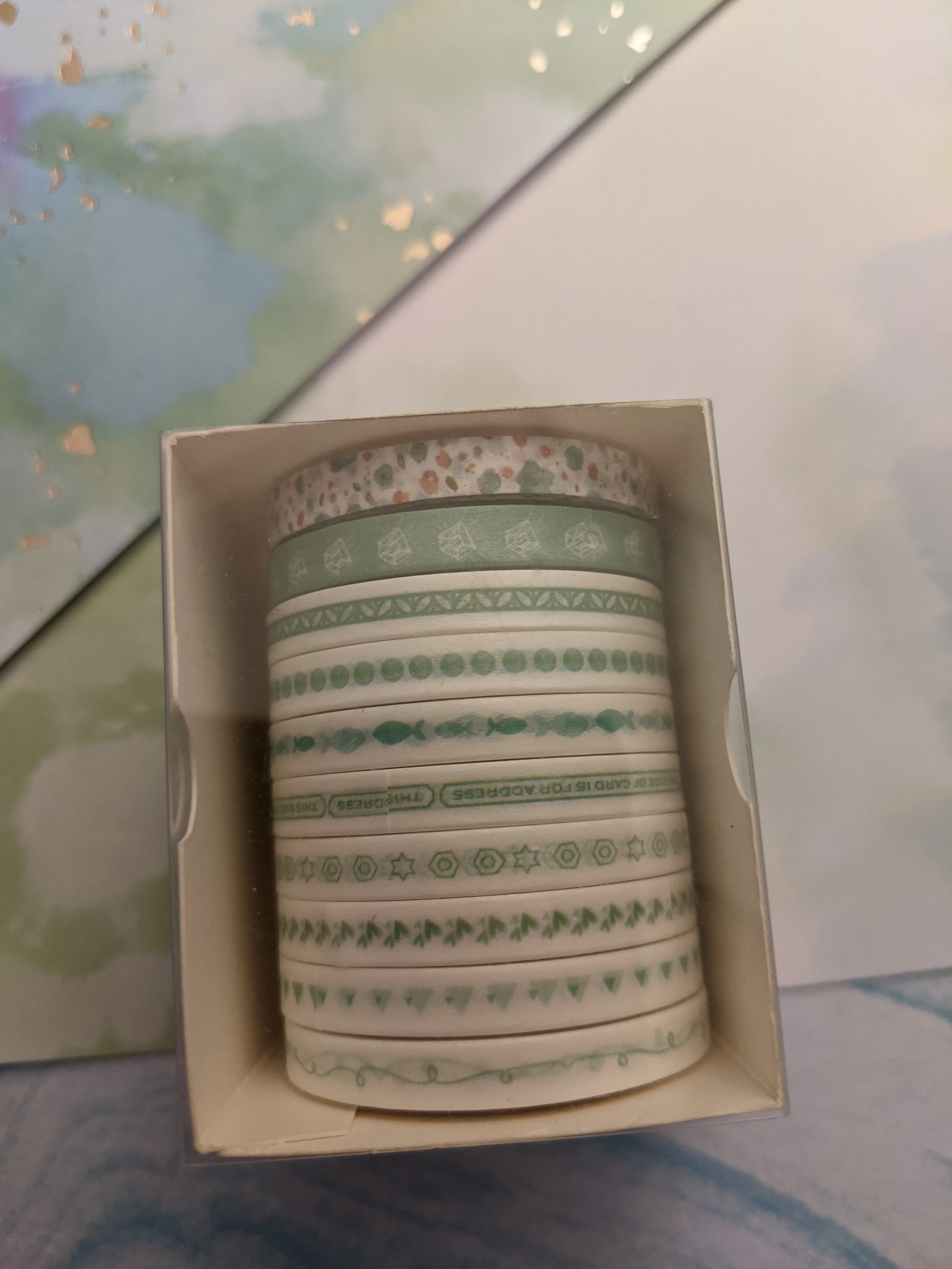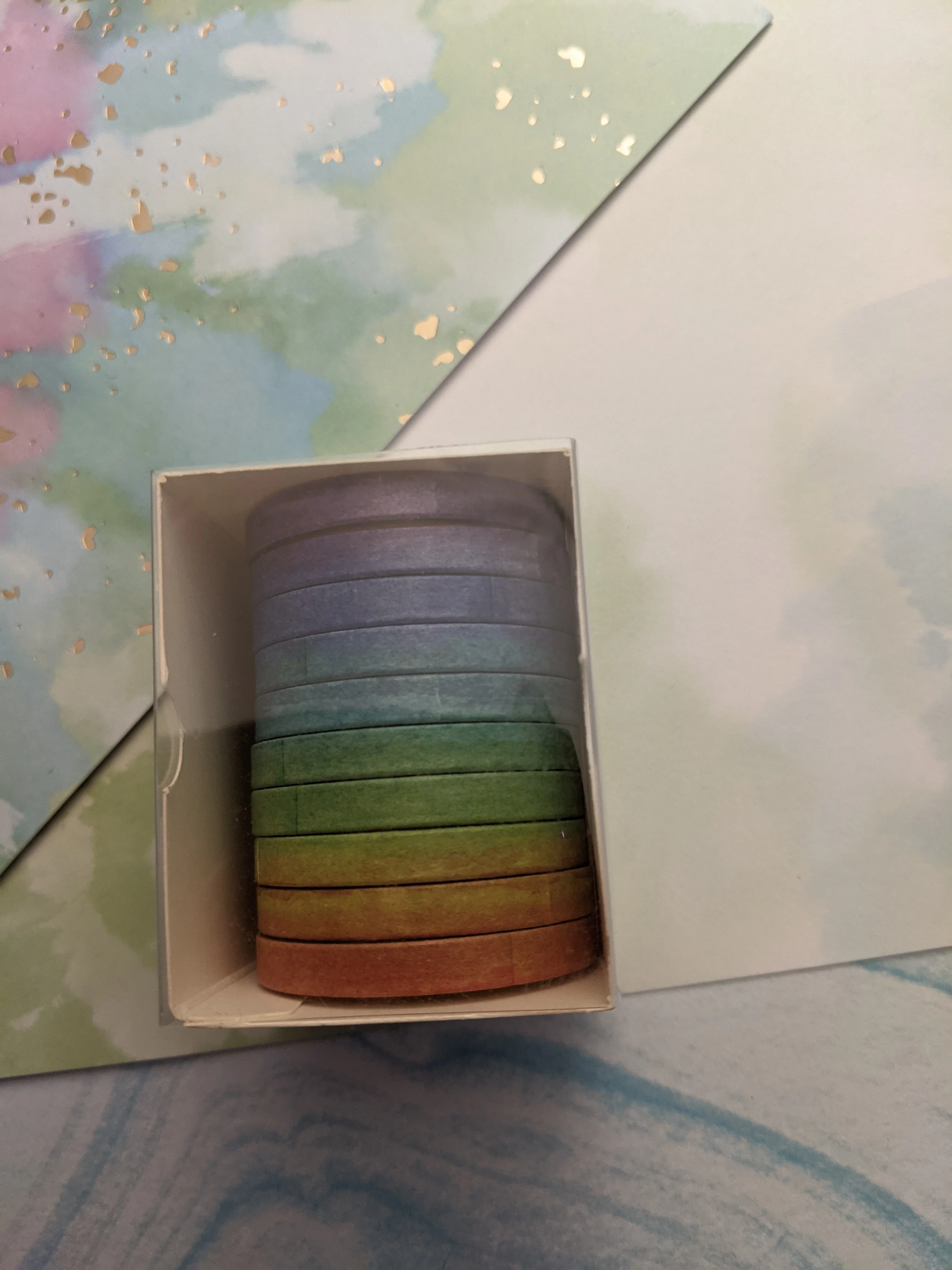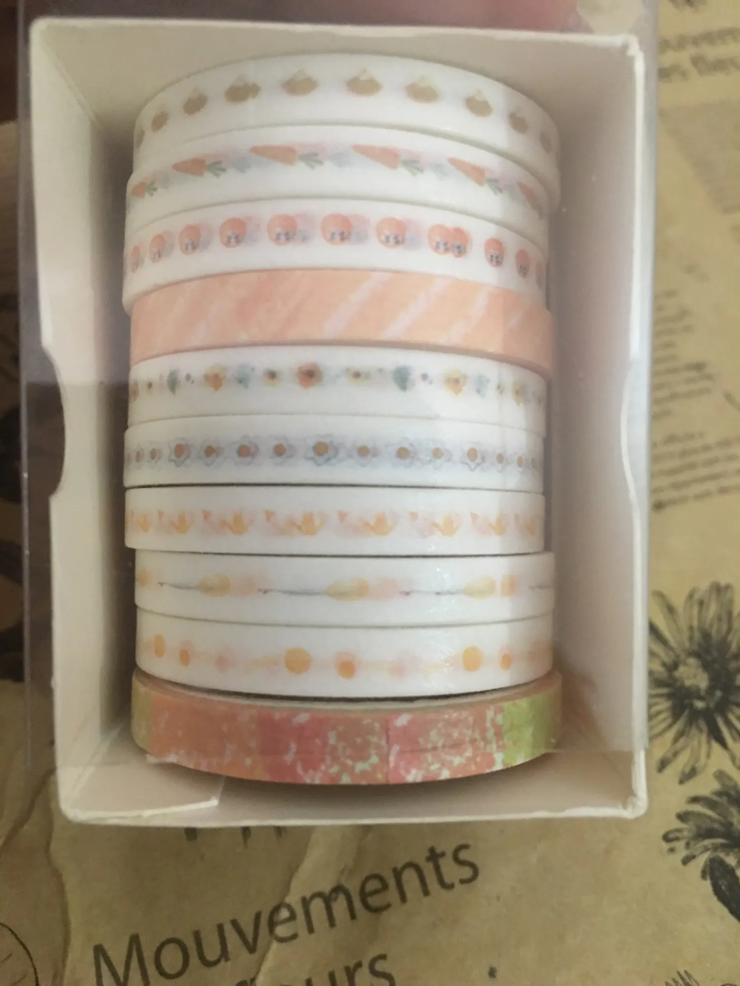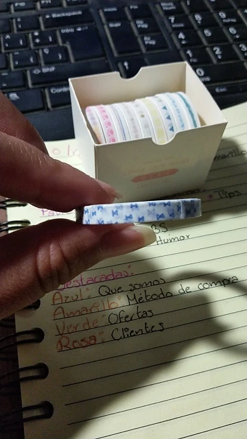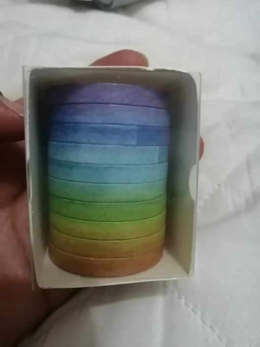 tal y como aparece en la foto, buena calidad, rápido envío, buen empaque, llegó todo muy seguro y bien protegido, compré muchos productos en esta tienda u llegaron todos juntos bien embalados en poco tiempo a Chile. Recomiendo absolutamente al vendedor y compraré más productos en el futuro sin duda, muy confiable y bellos productos para bullet journal.