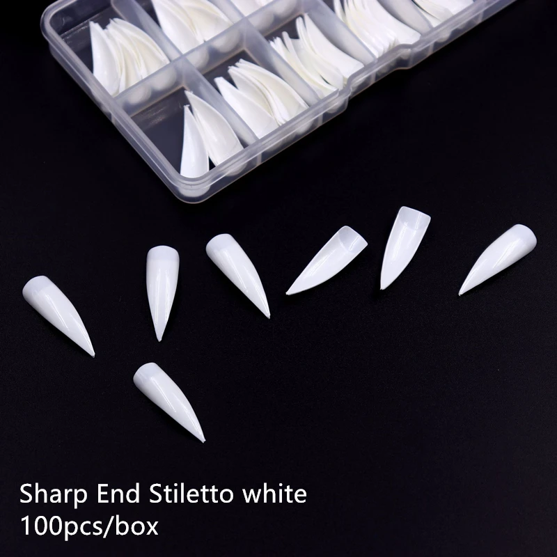 100 шт.кор. гроб ногти балерины на плоской подошве Форма полное покрытие акриловое волокно накладные ногти: белыйпрозрачныйнатуральный длинный стилет Flase для Неил арта украшения для кончиков ногтей