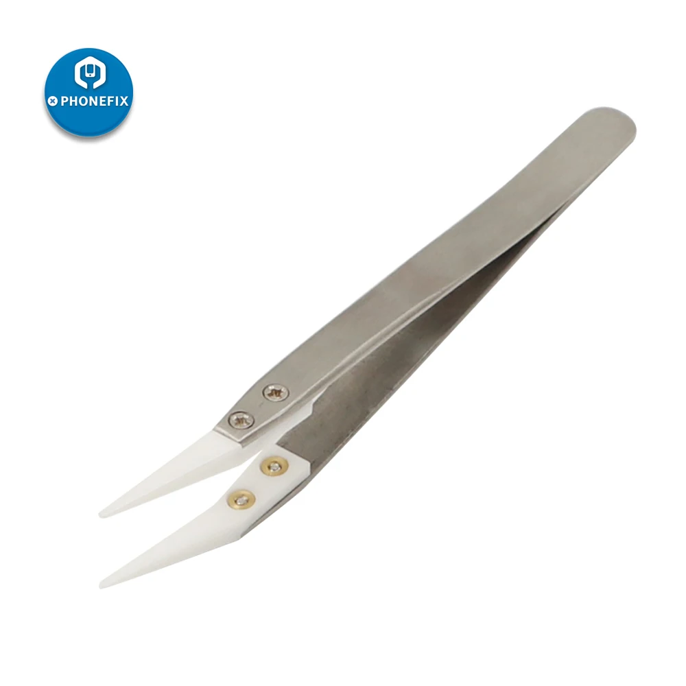 Антистатические керамические пинцеты PHONEFIX, термостойкие изолированные пинцеты из нержавеющей стали, электронные пинцеты с прямым изогнутым наконечником